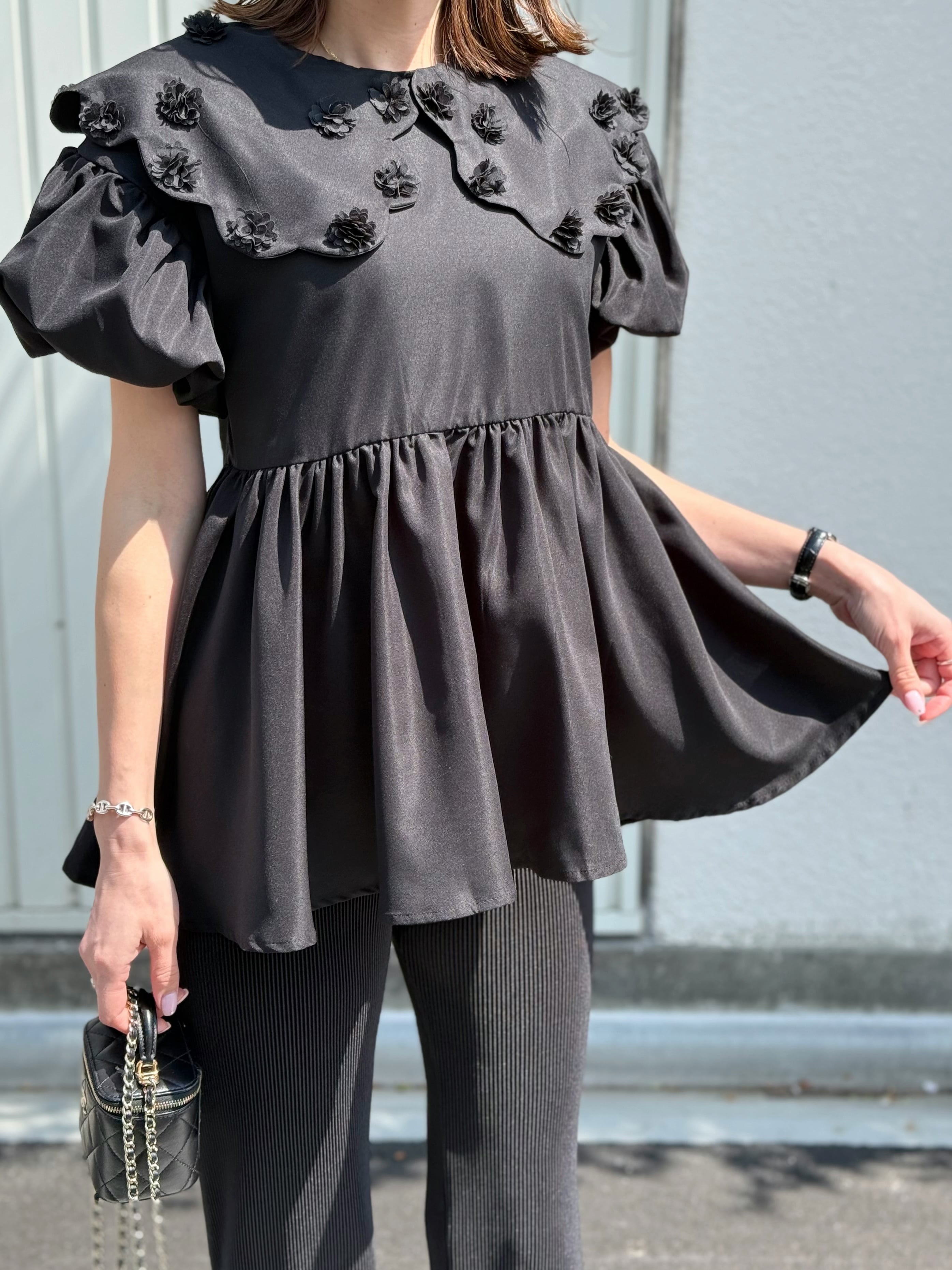 フラワーモチーフをあしらったスカラップ襟が『主役級』の可愛さ♡
