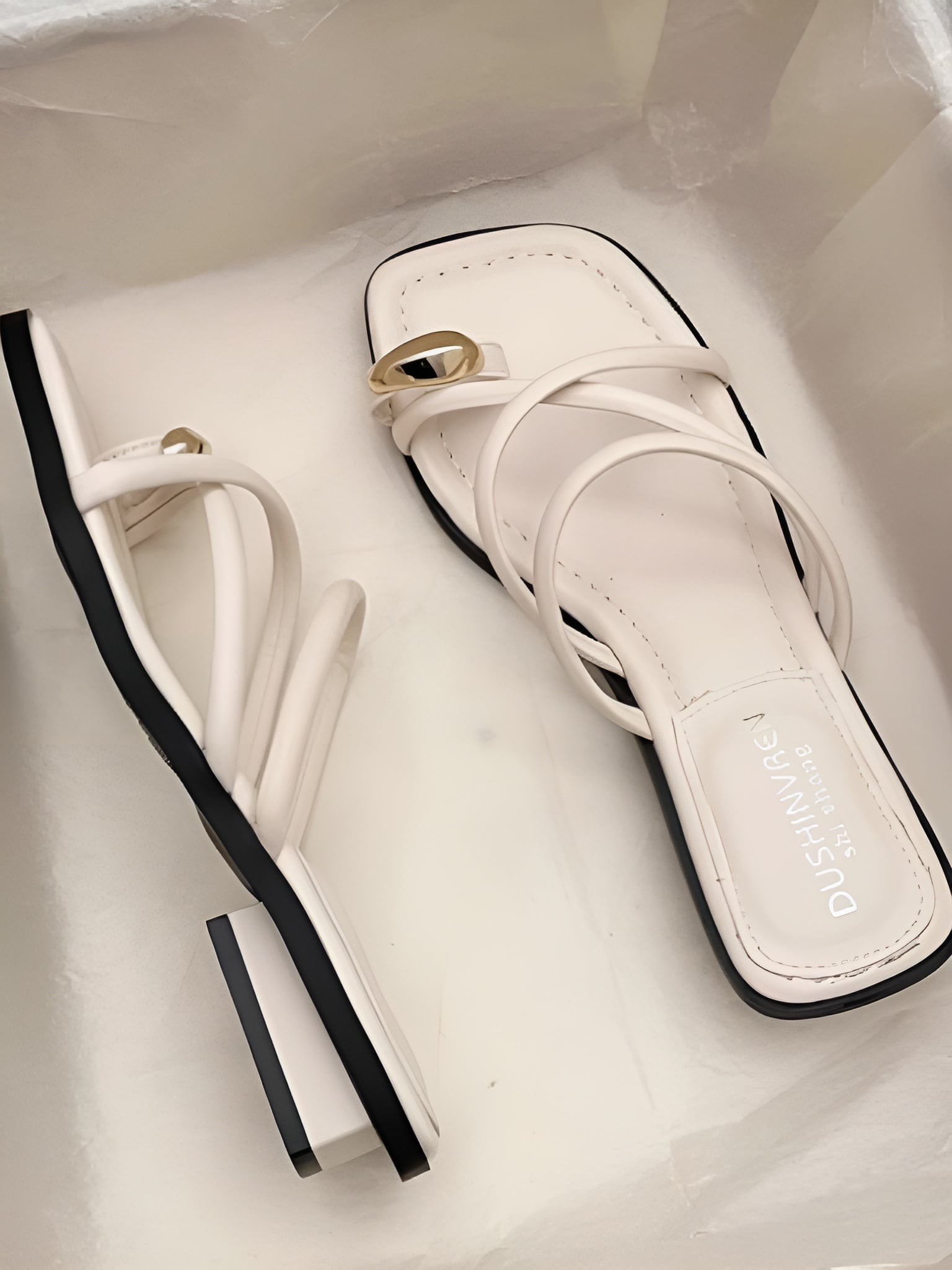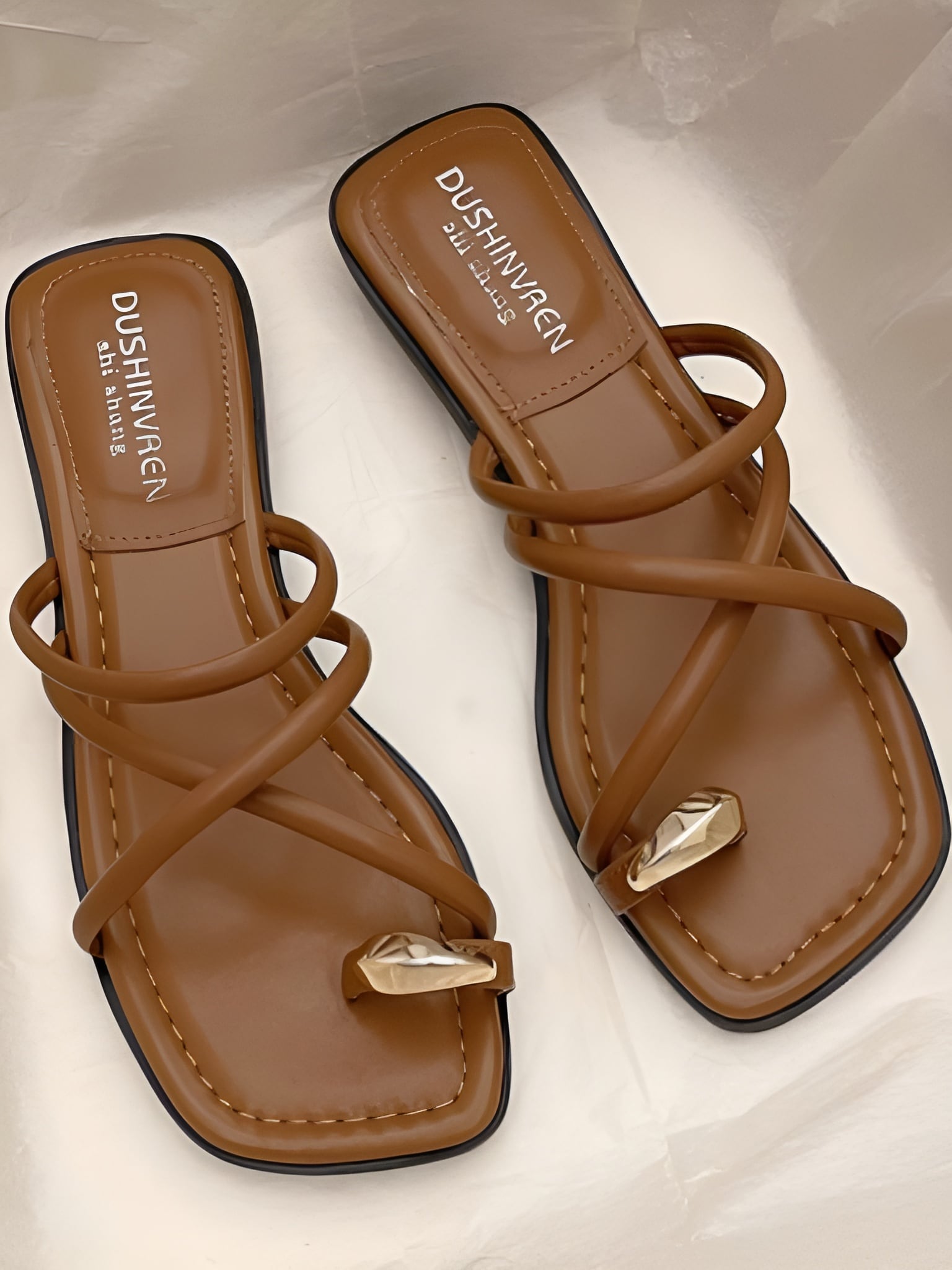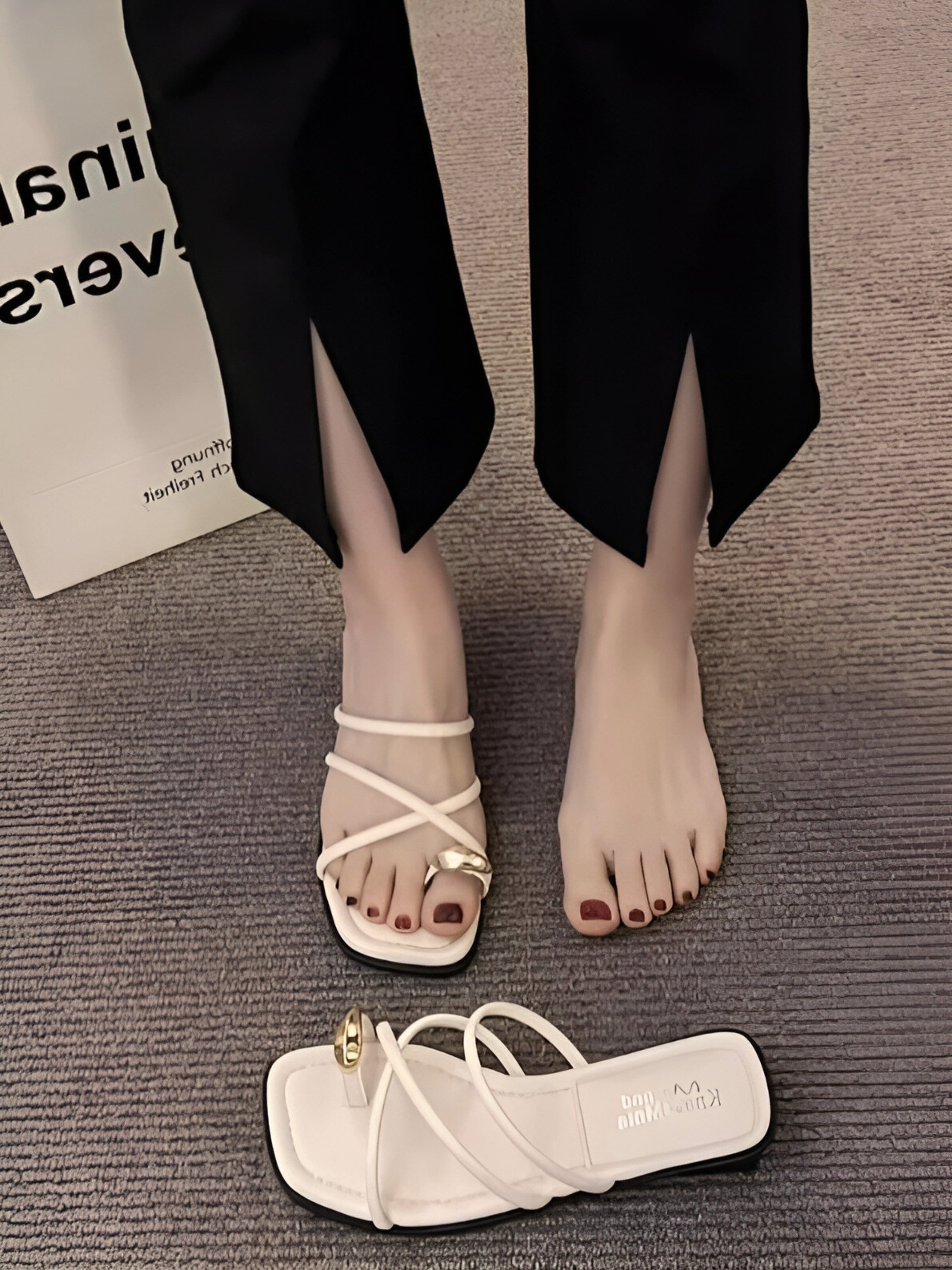 アクセサリー感覚で取り入れられるメタルパーツが魅力のサムリングサンダル♡