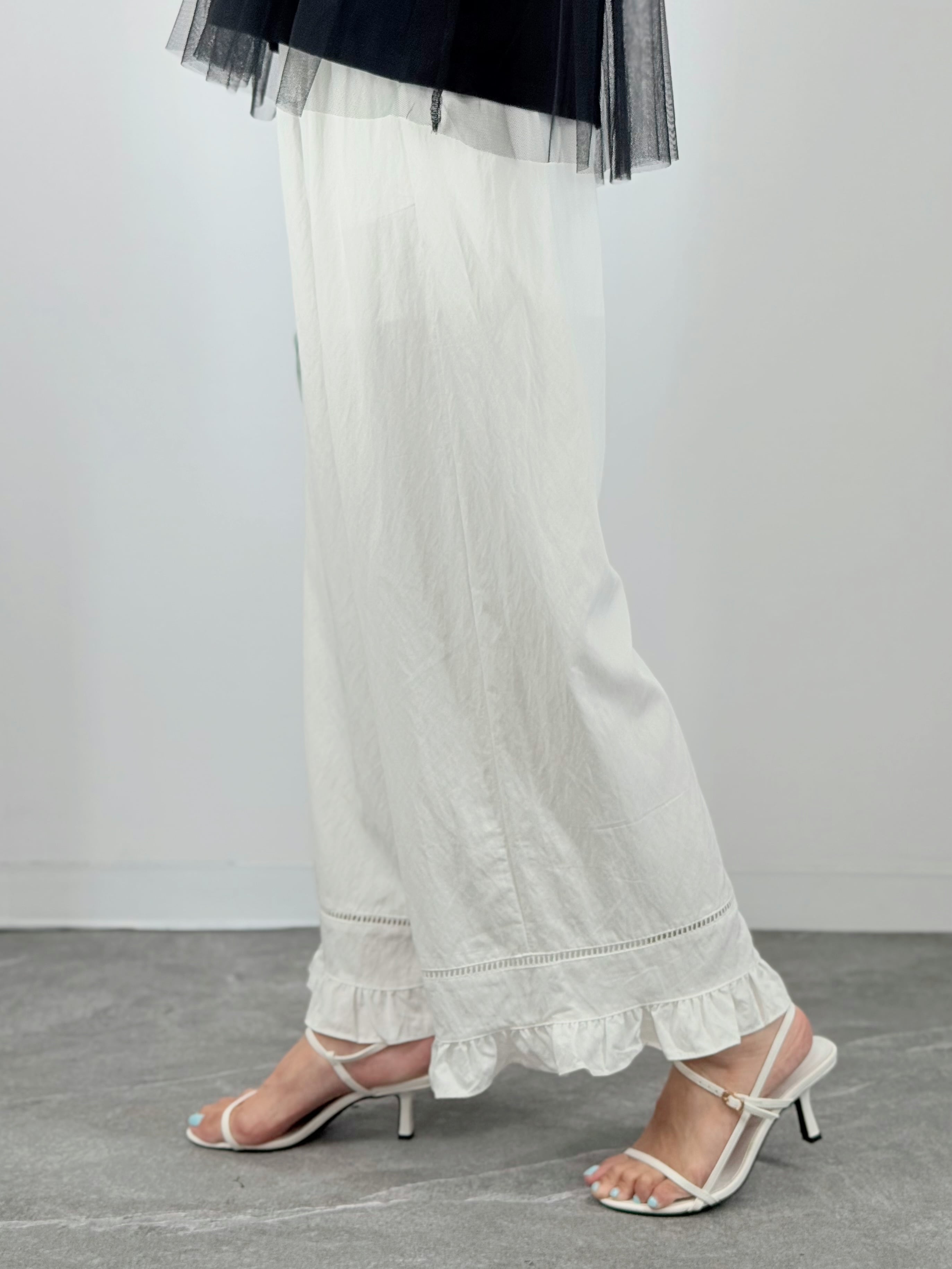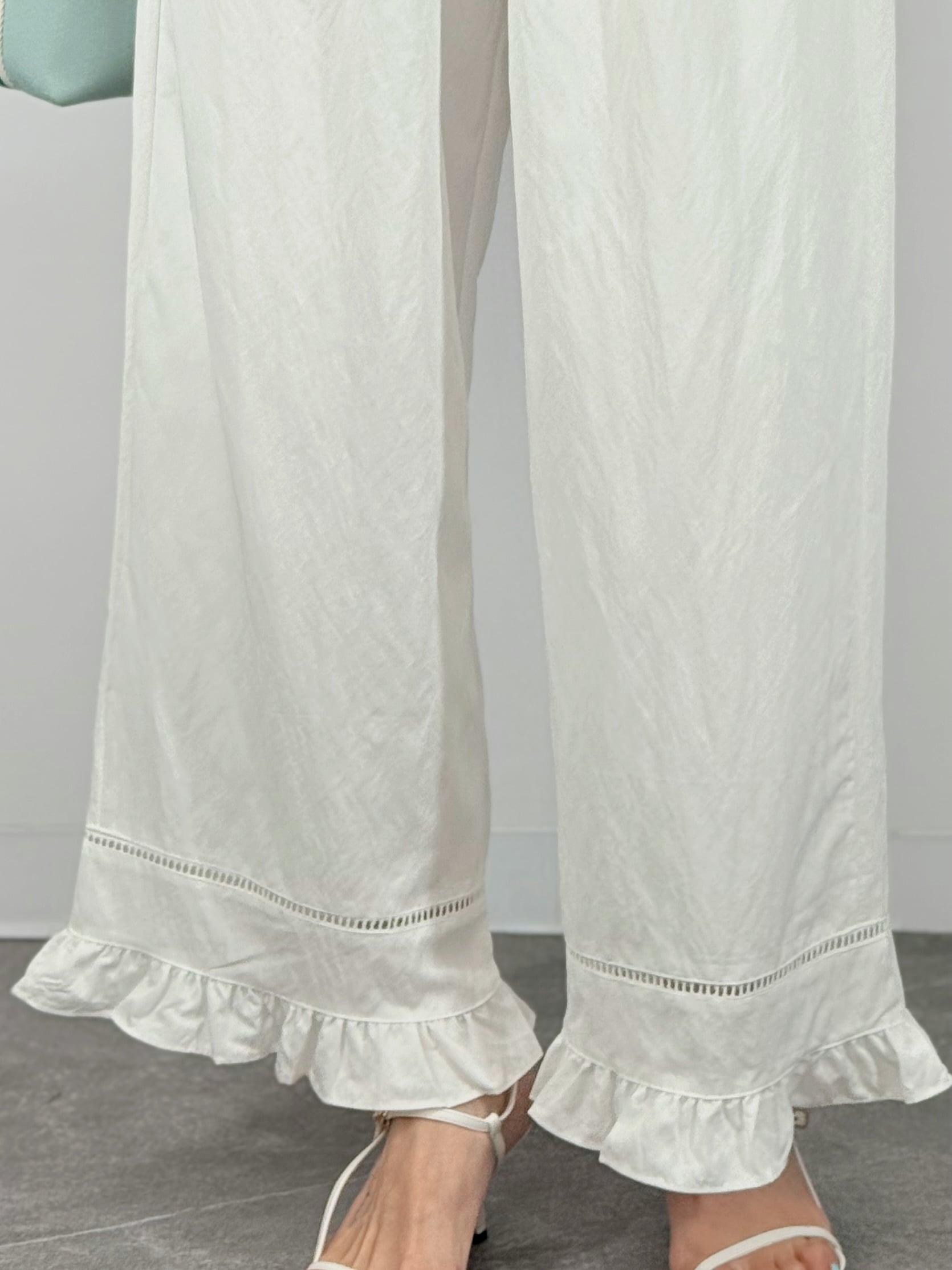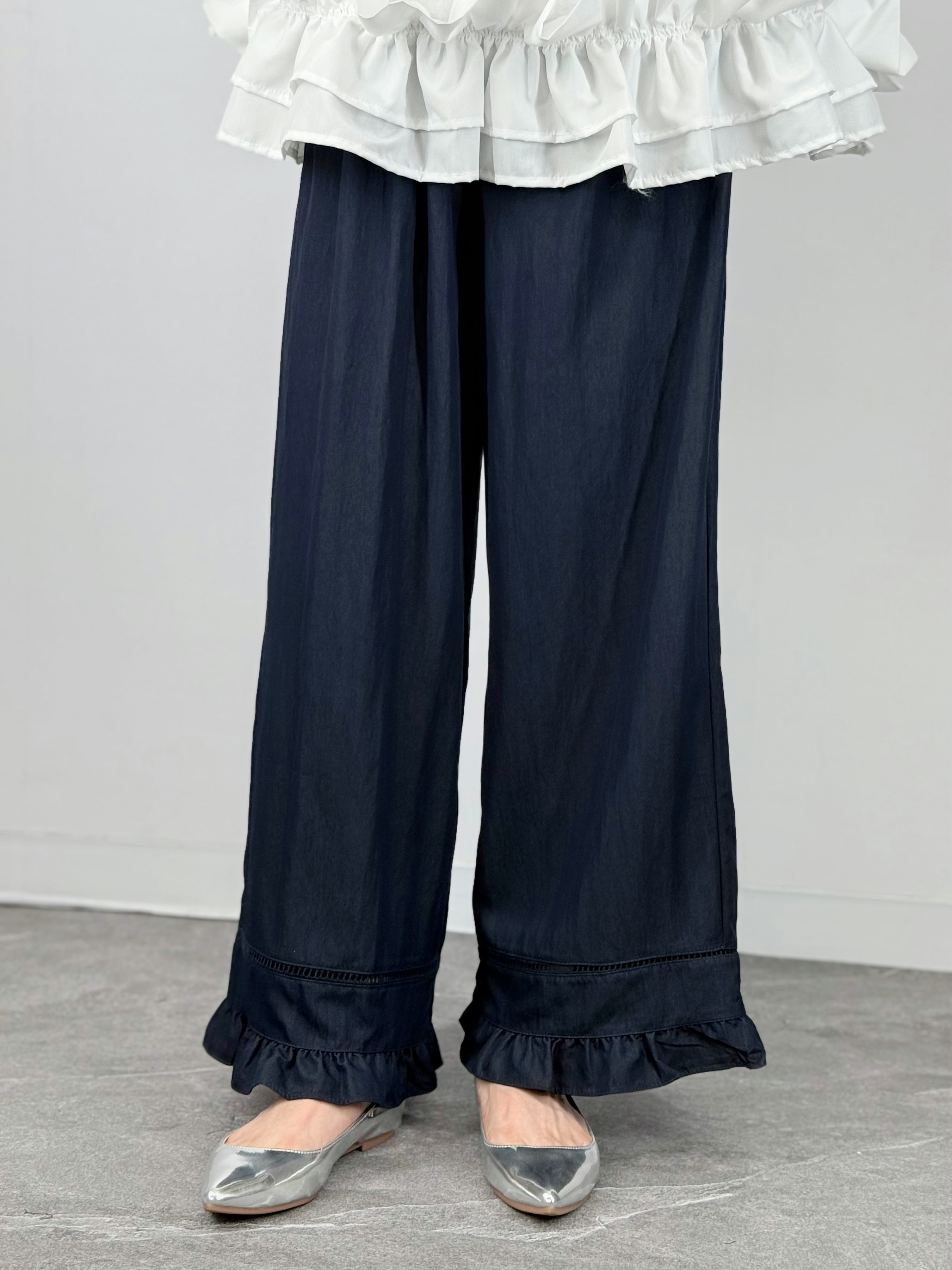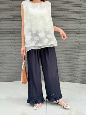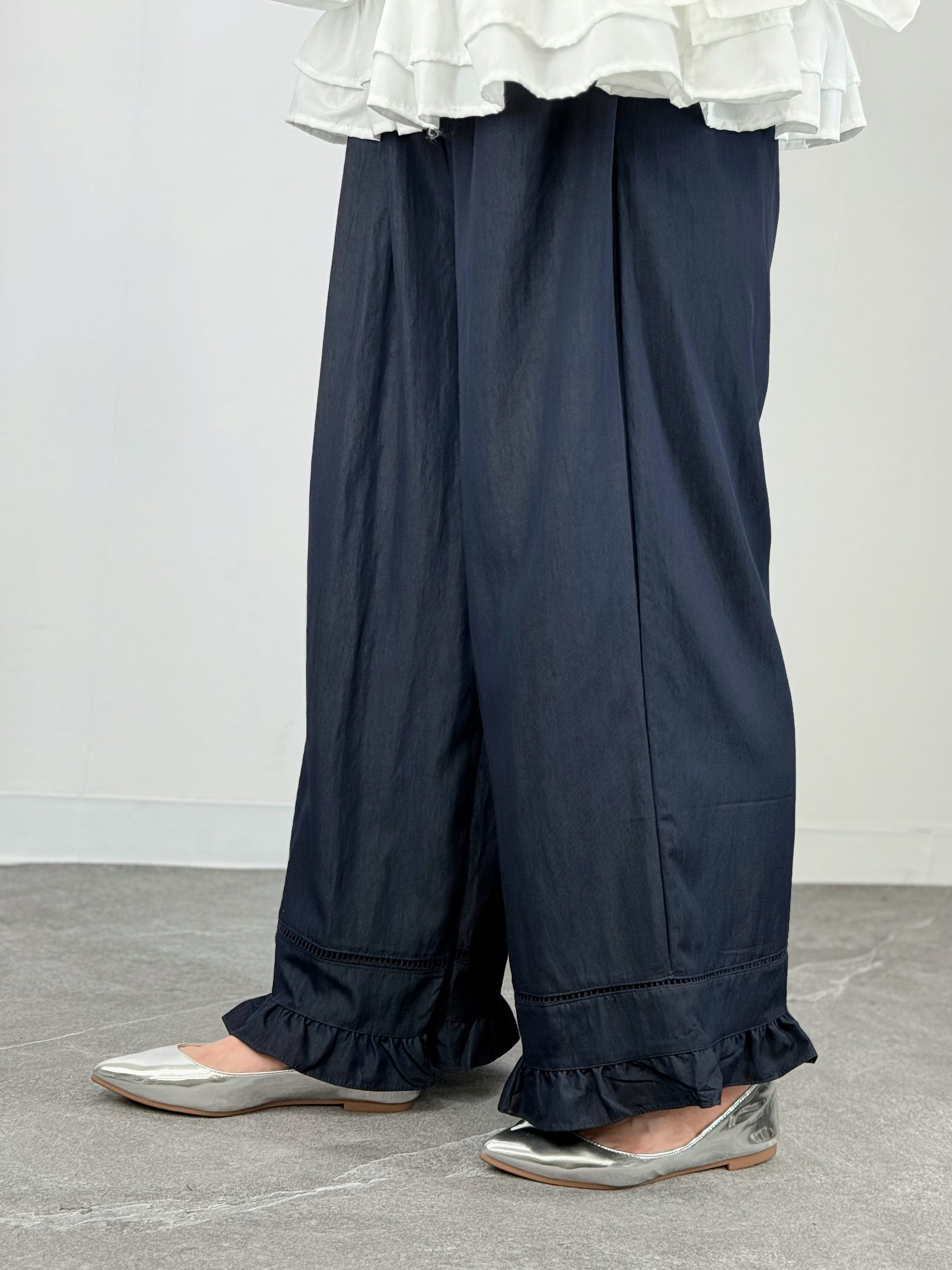 『甘さを忍ばせた、大人の“きれいめフリルパンツ”』