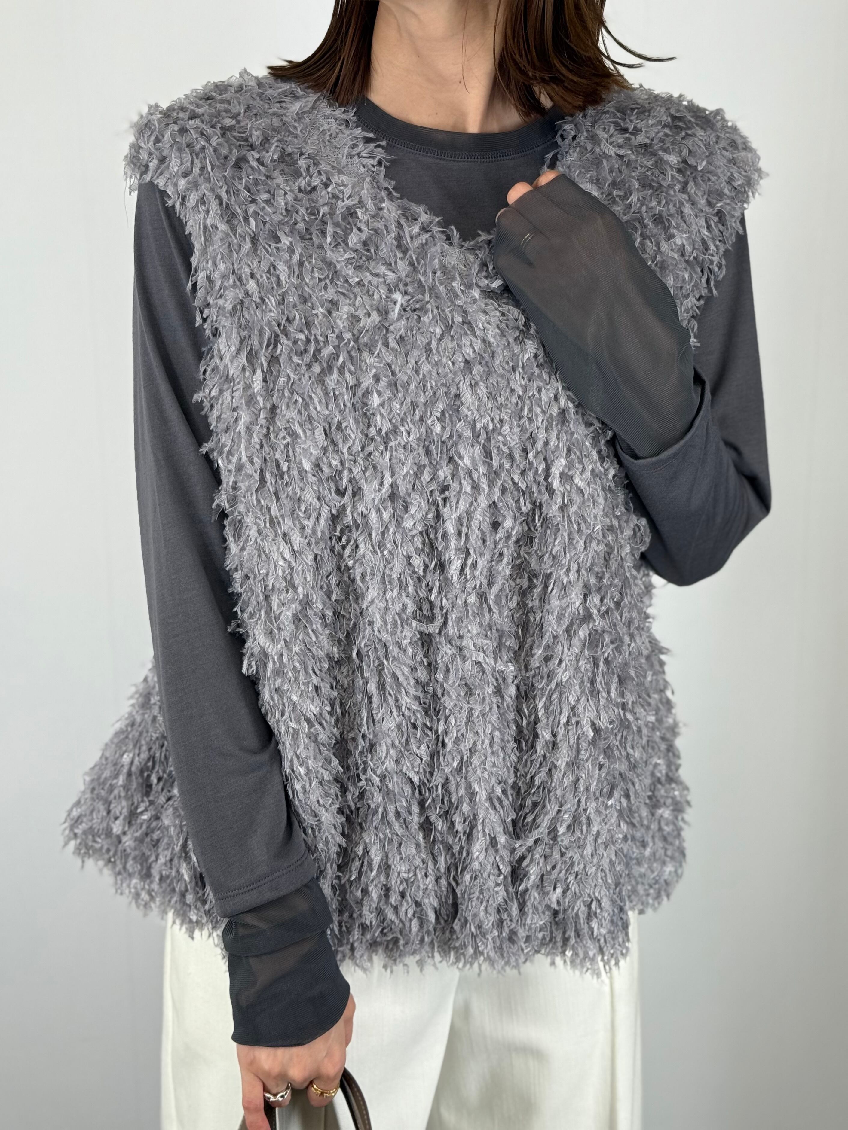 さらりとした肌触りのカットソー素材を使用し、一枚で様になる異素材ミックスデザインが魅力です。