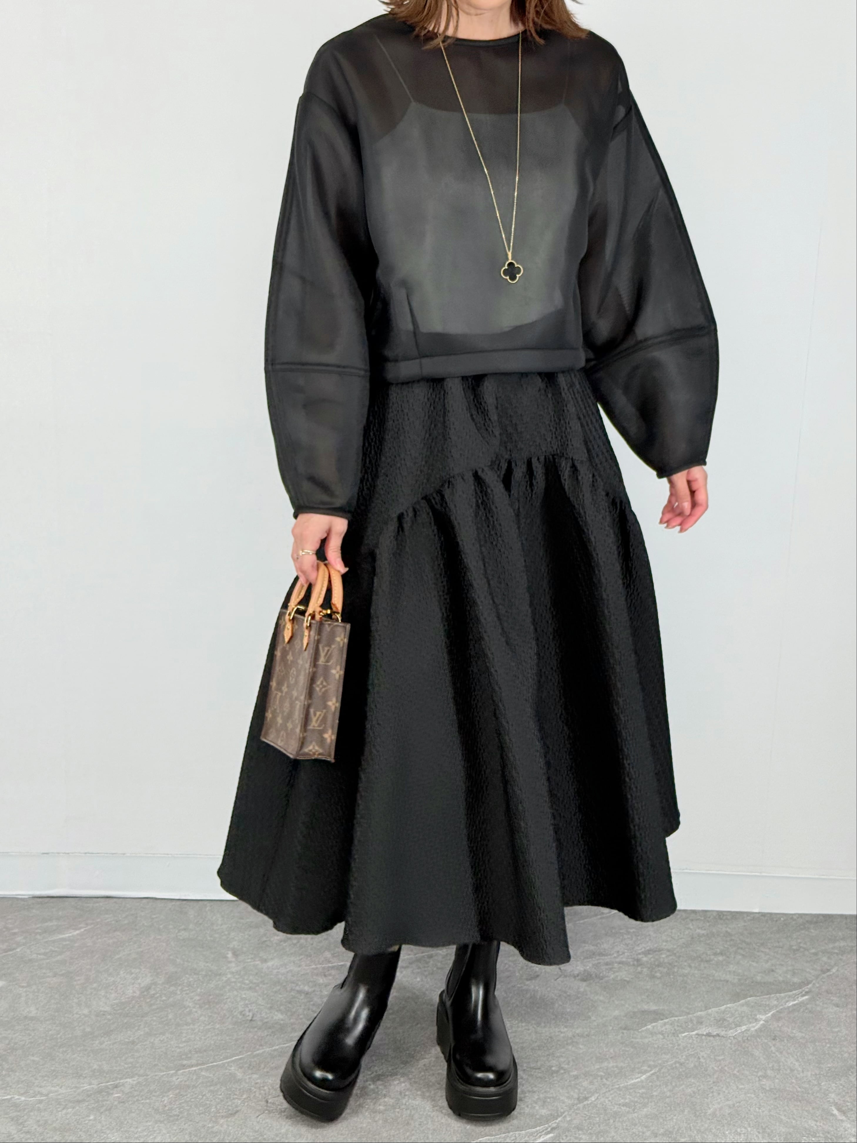 クロップド丈と相まって着るだけで着映えするシルエットを叶えます。