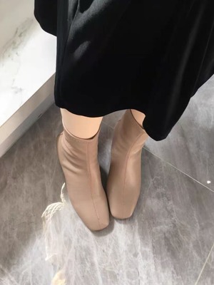 すっきりとしたスクエアトゥと、筒周りの程よいフィット感が、パンツにもスカートにも合わせやすい絶妙なバランスを実現。