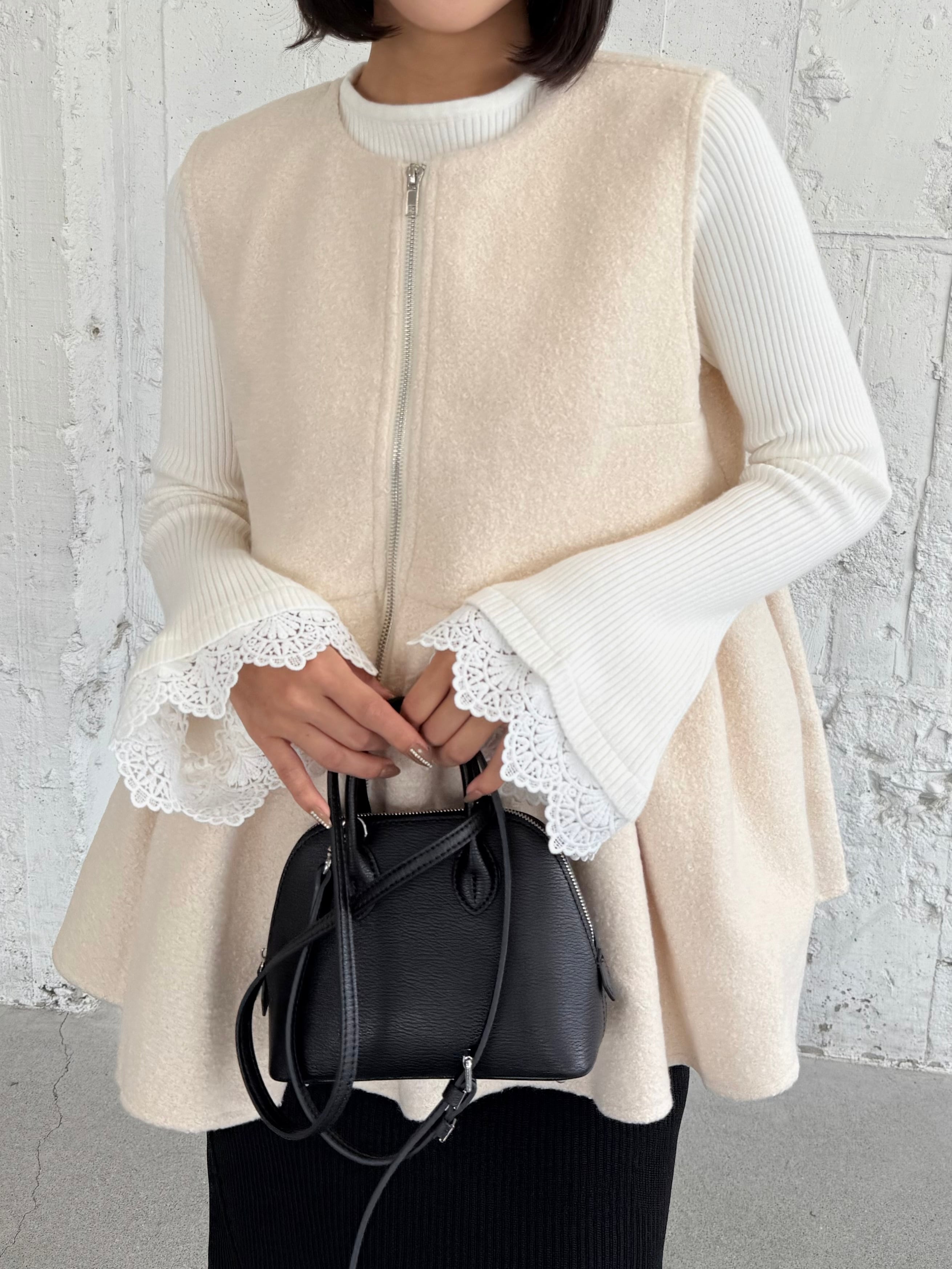 最大の魅力は、袖口からちらりと覗くレースのフリル。