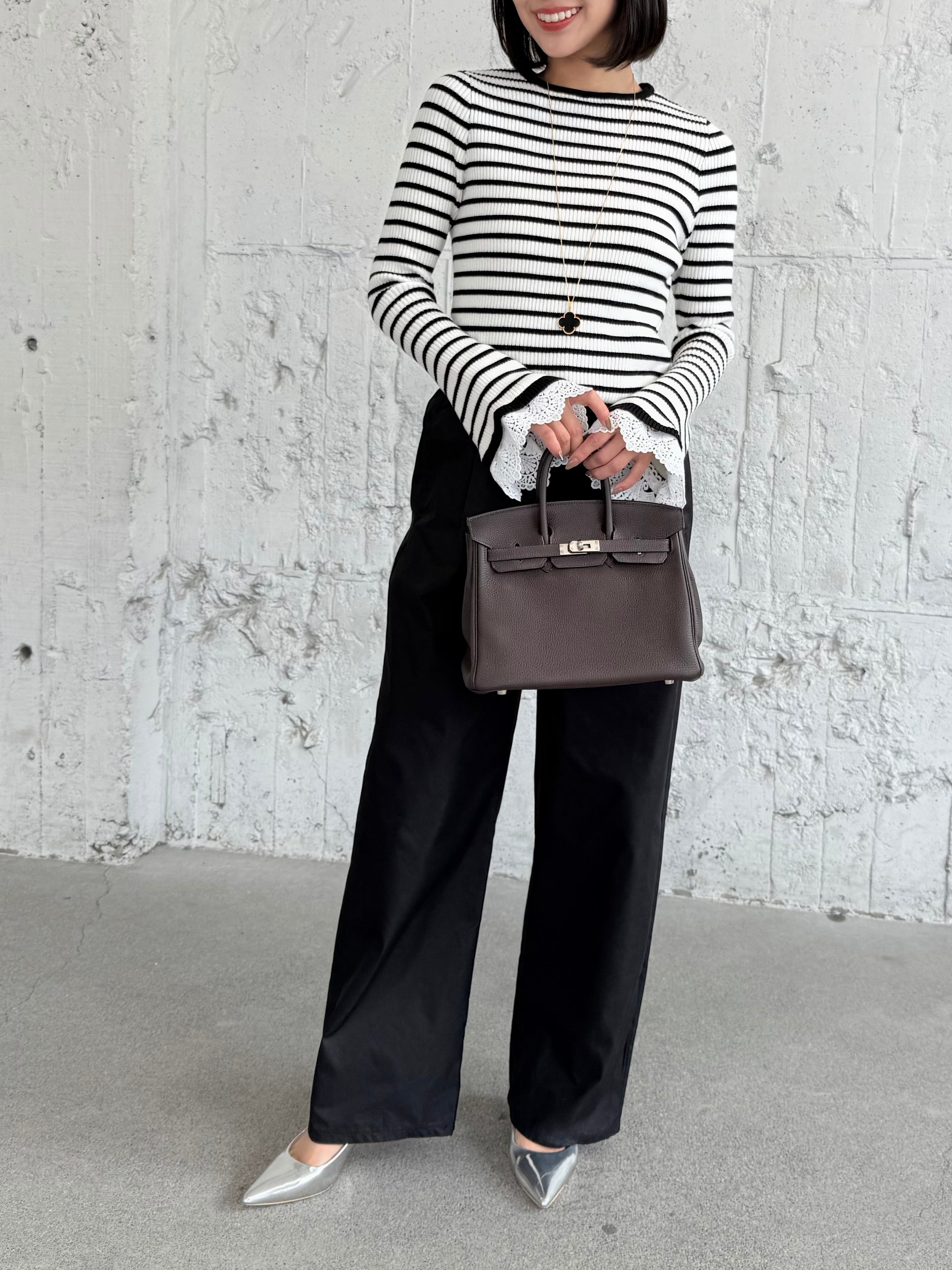 着回し力と華やかさを両立した、レイヤードが映えるリブニットです。