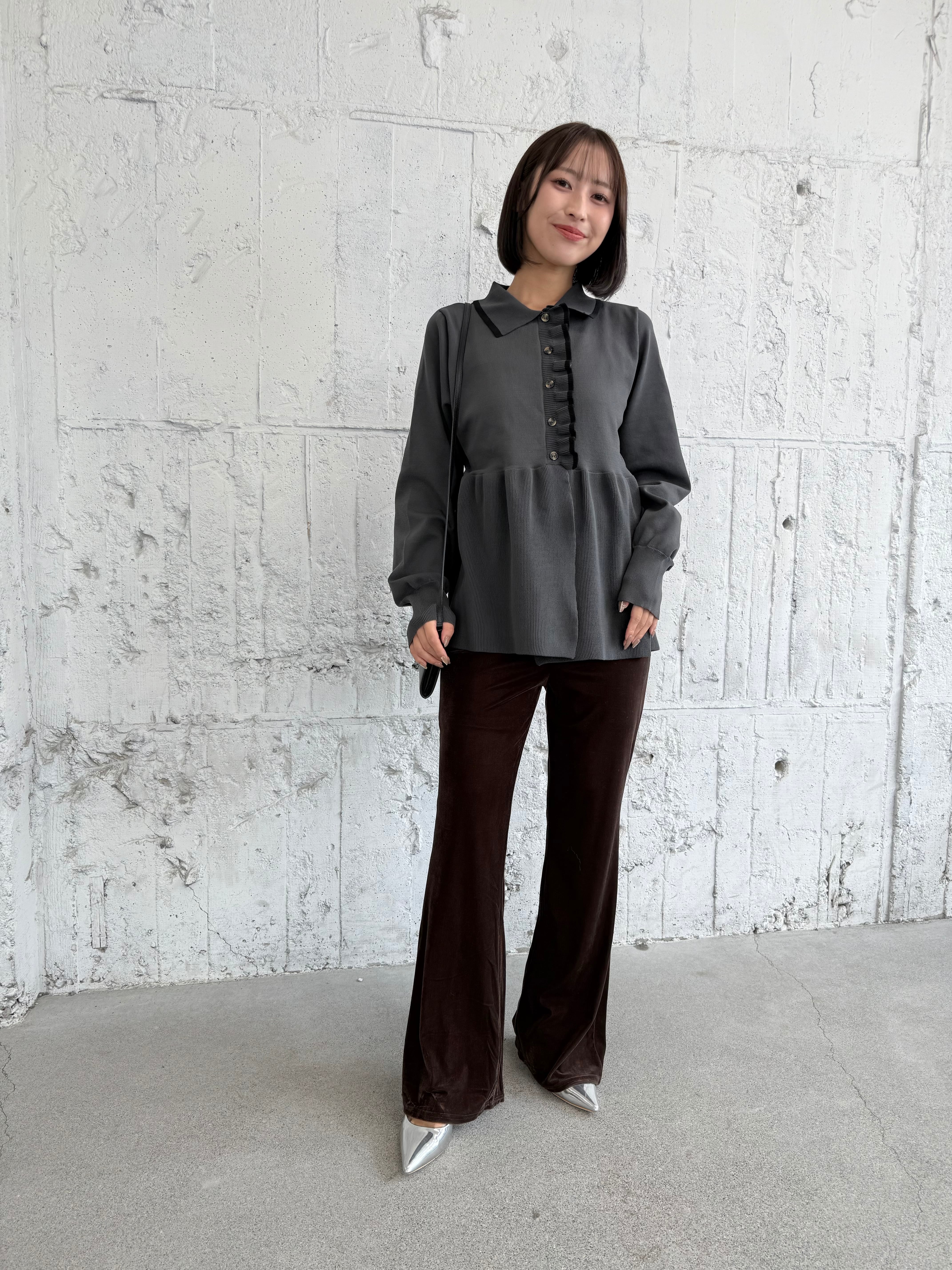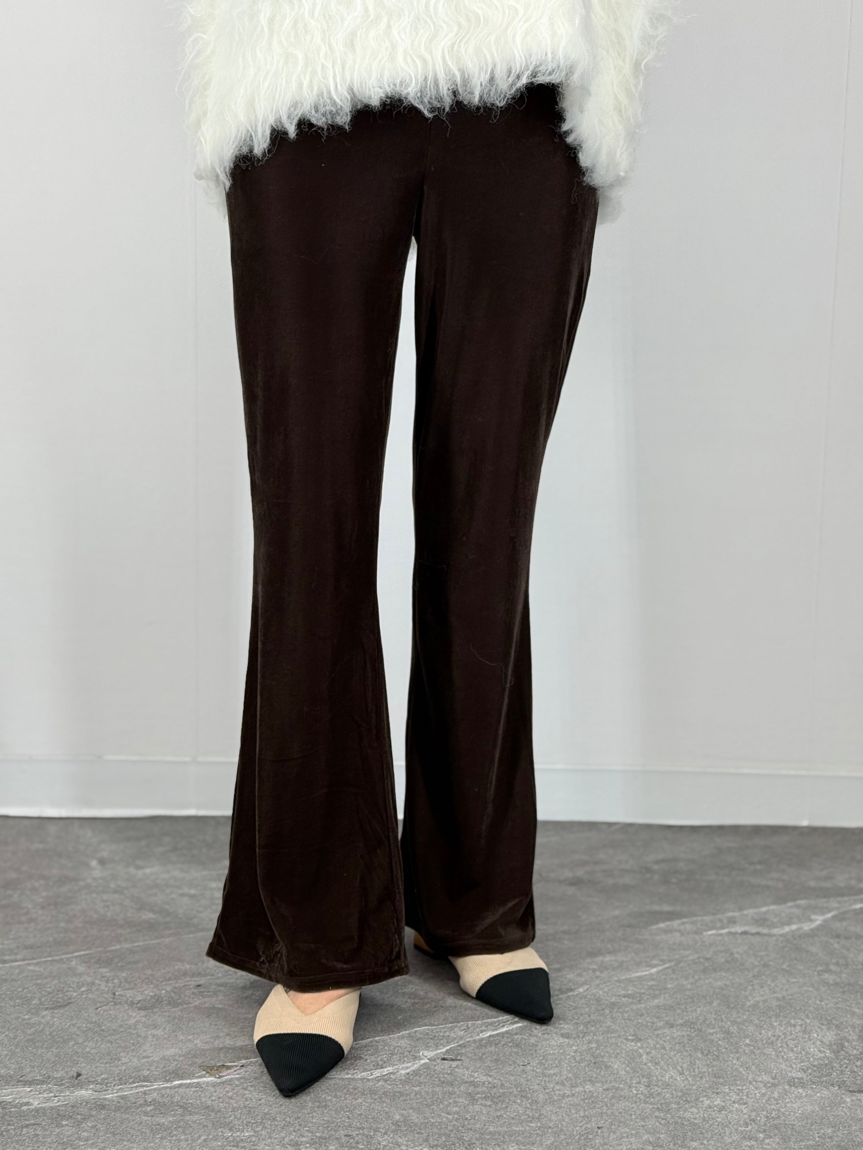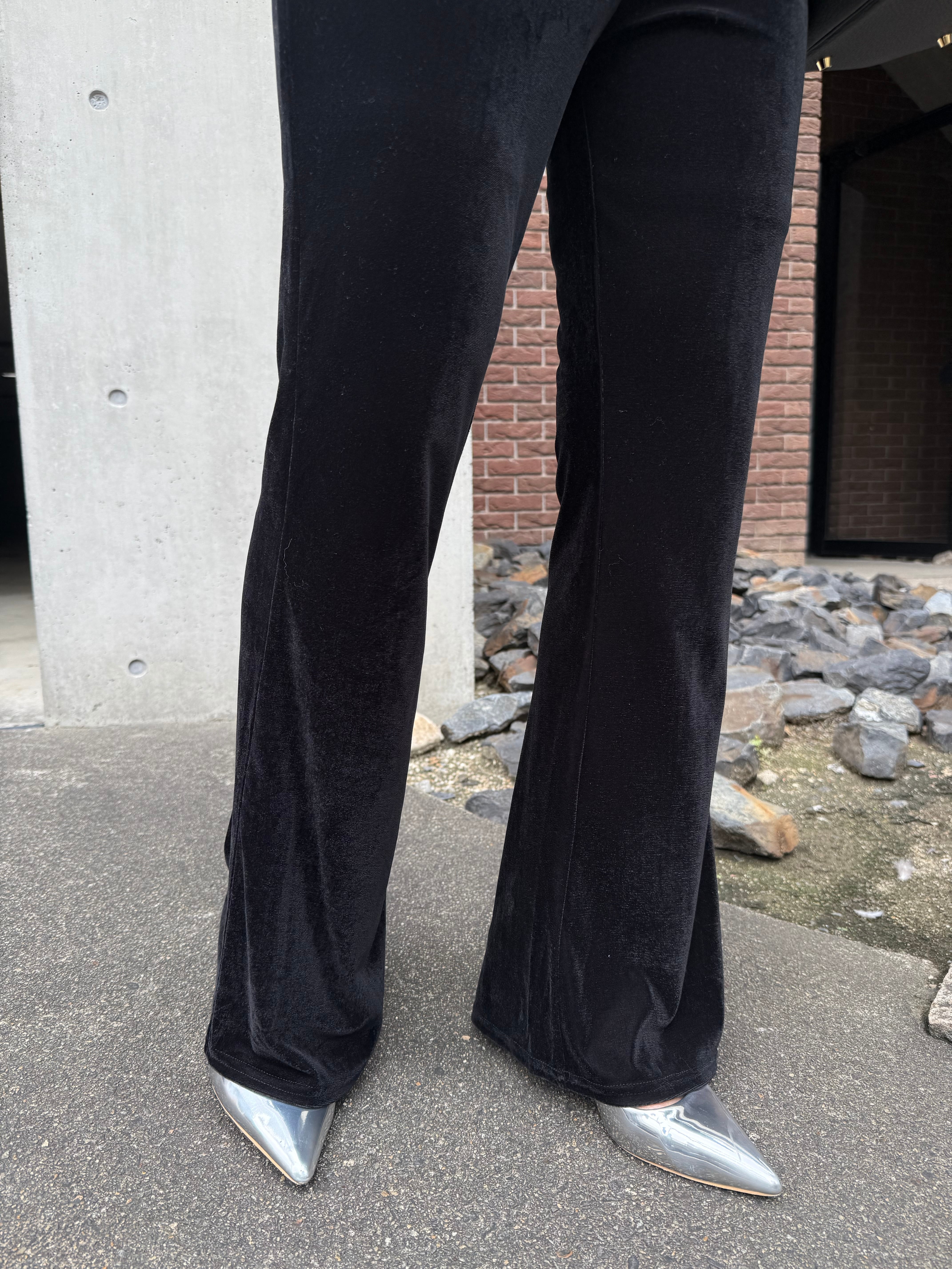 まるでパジャマのようなリラックス感と、ドレッシーな高級感を両立させたベロアフレアパンツです。