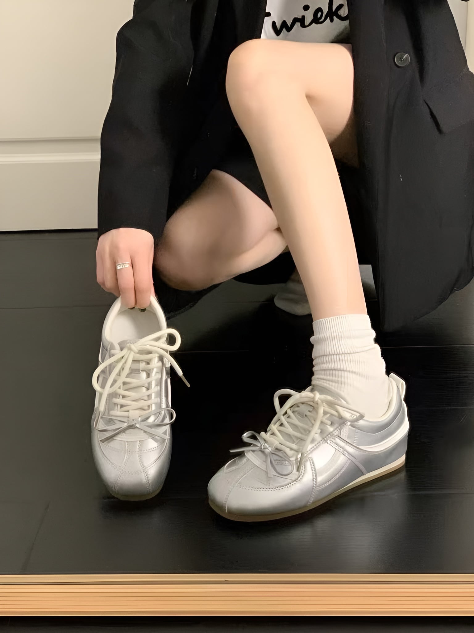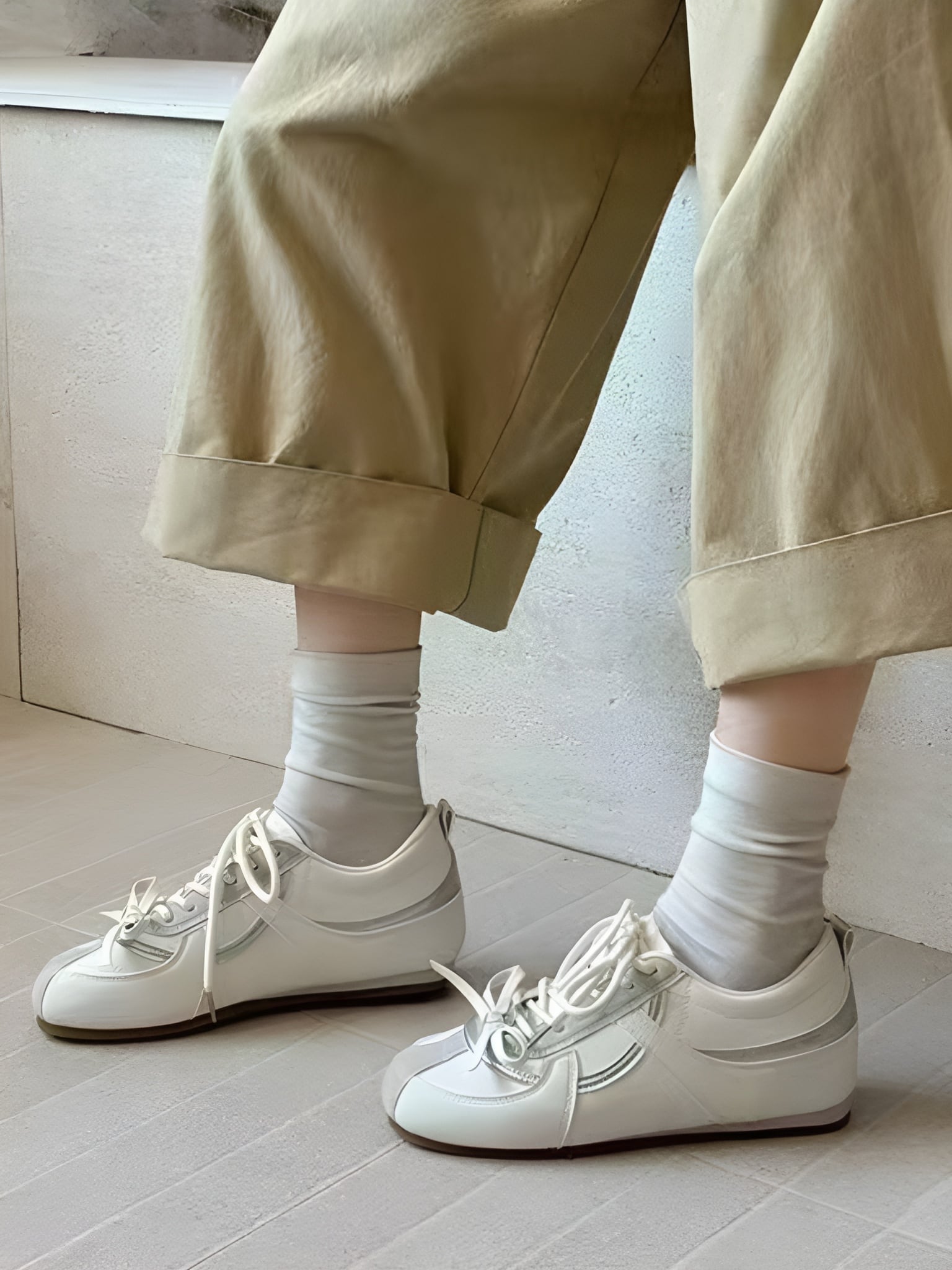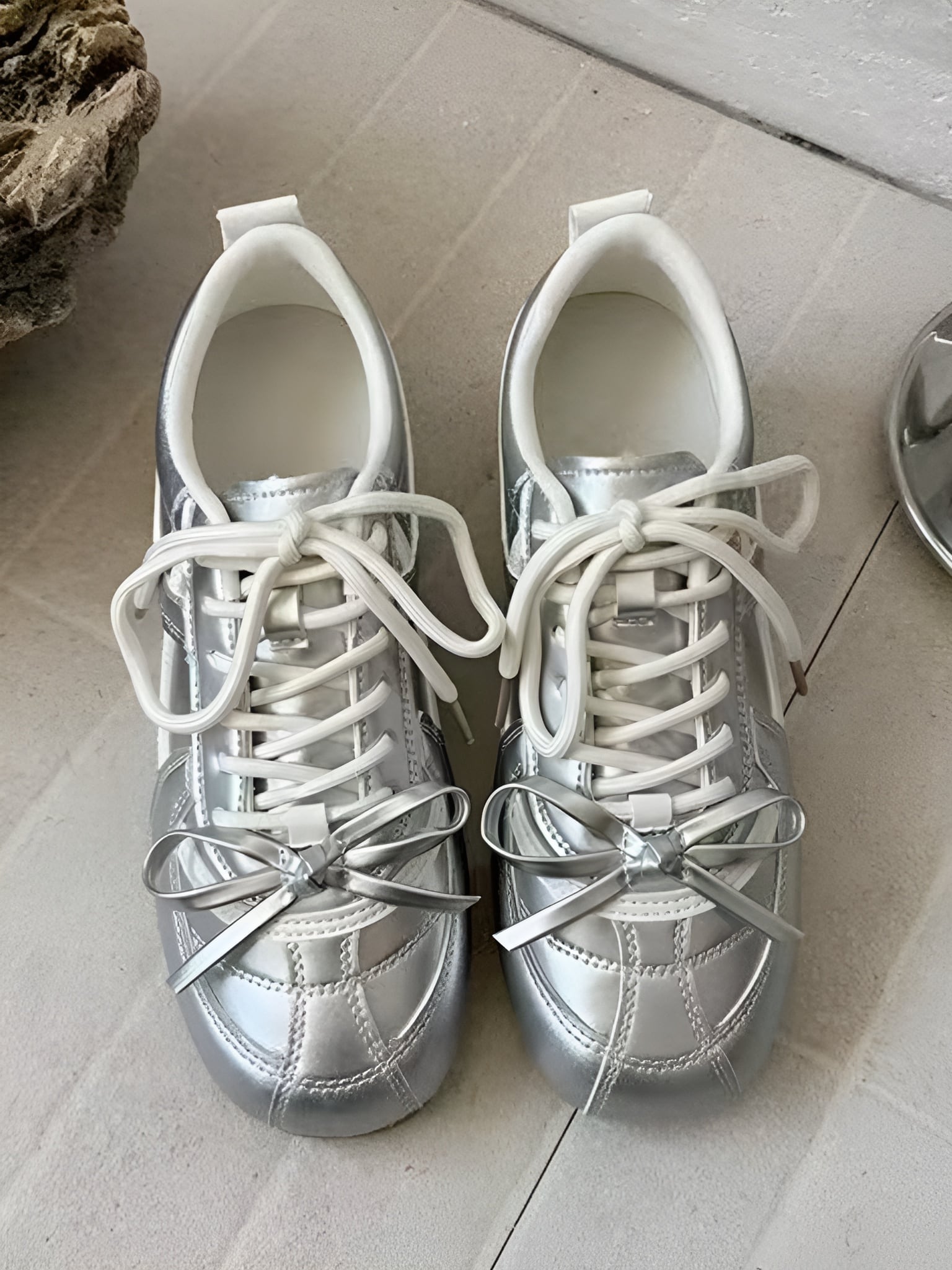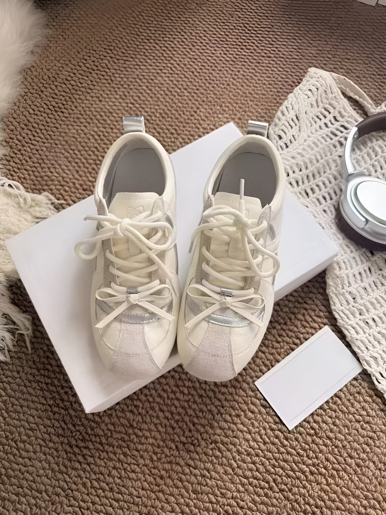 機能的なレースアップにリボンの装飾をプラスした、大人の遊び心溢れるスニーカー。