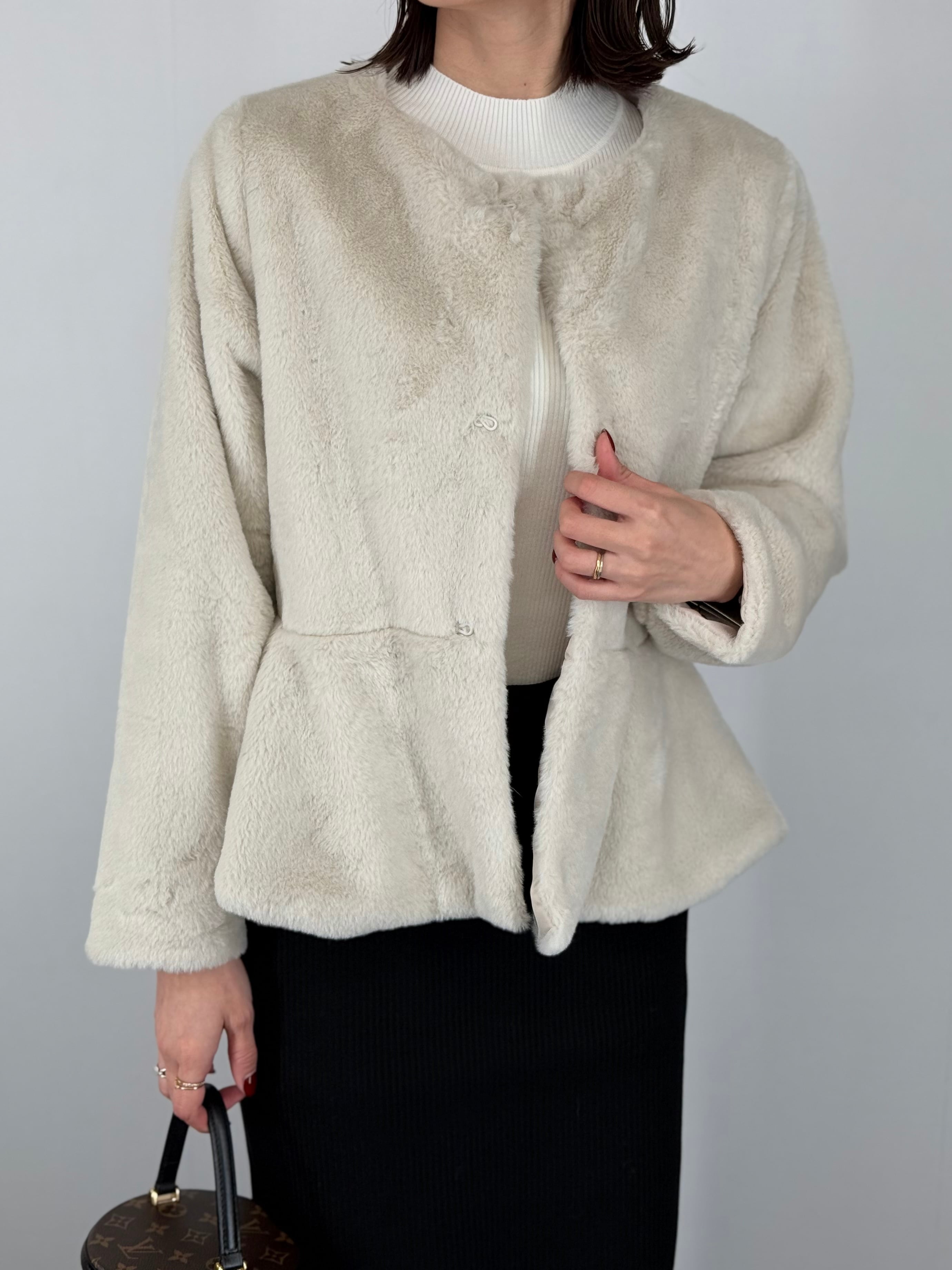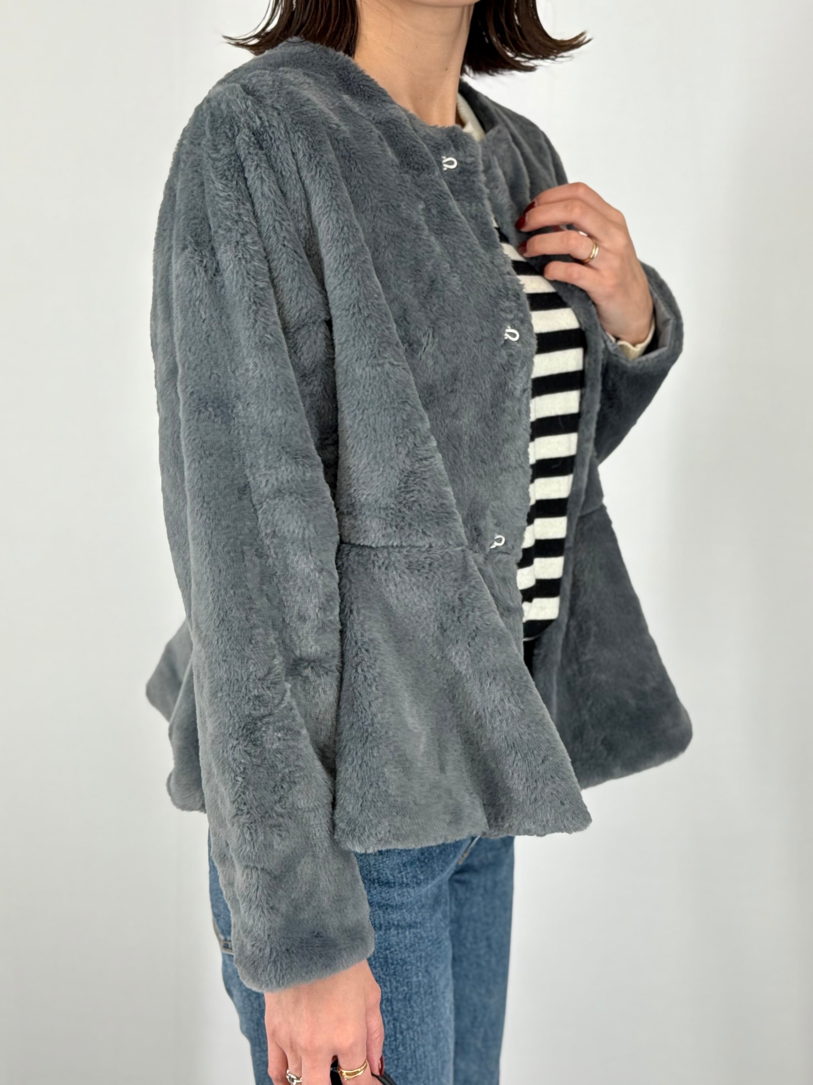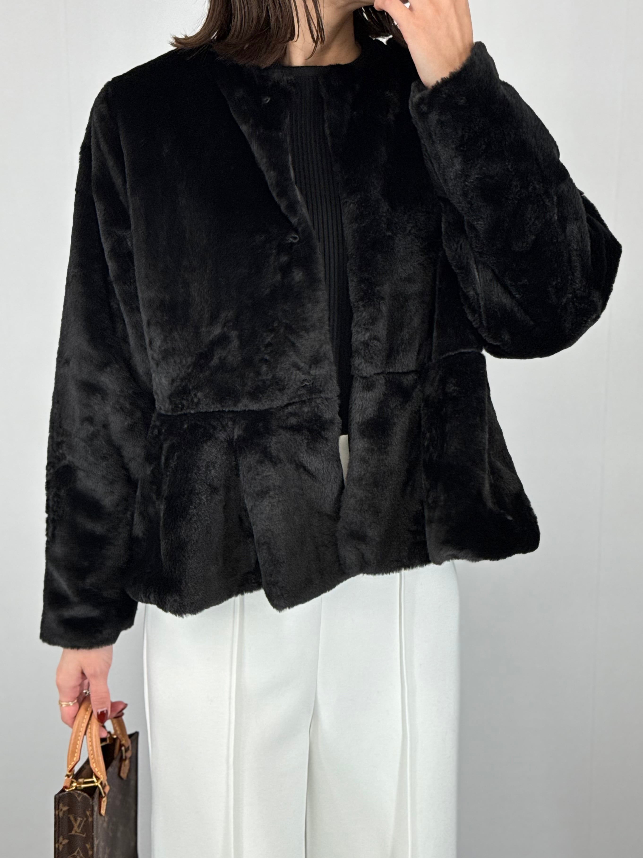 羽織るだけで瞬時に旬顔になれる、ふわふわとした手触りが魅力のフェイクファージャケット。