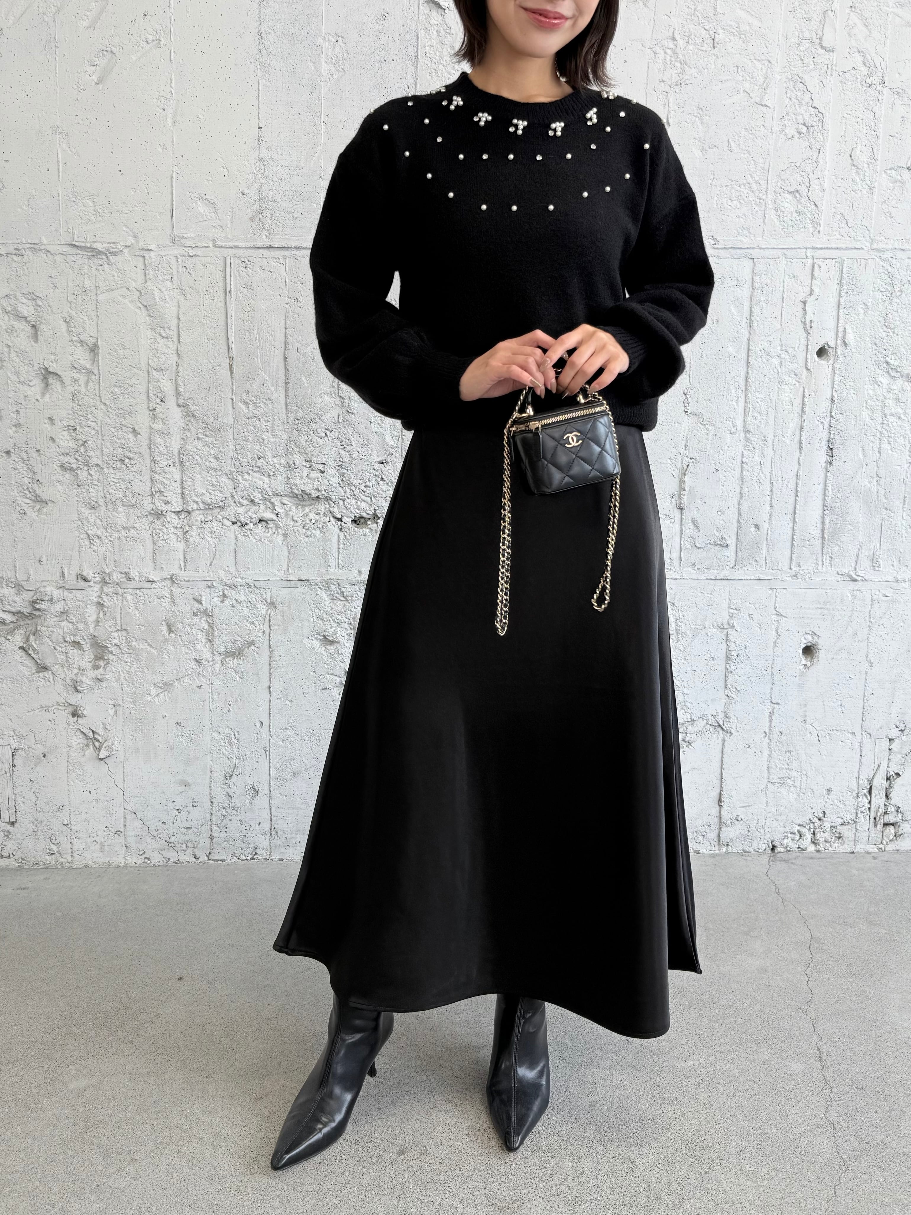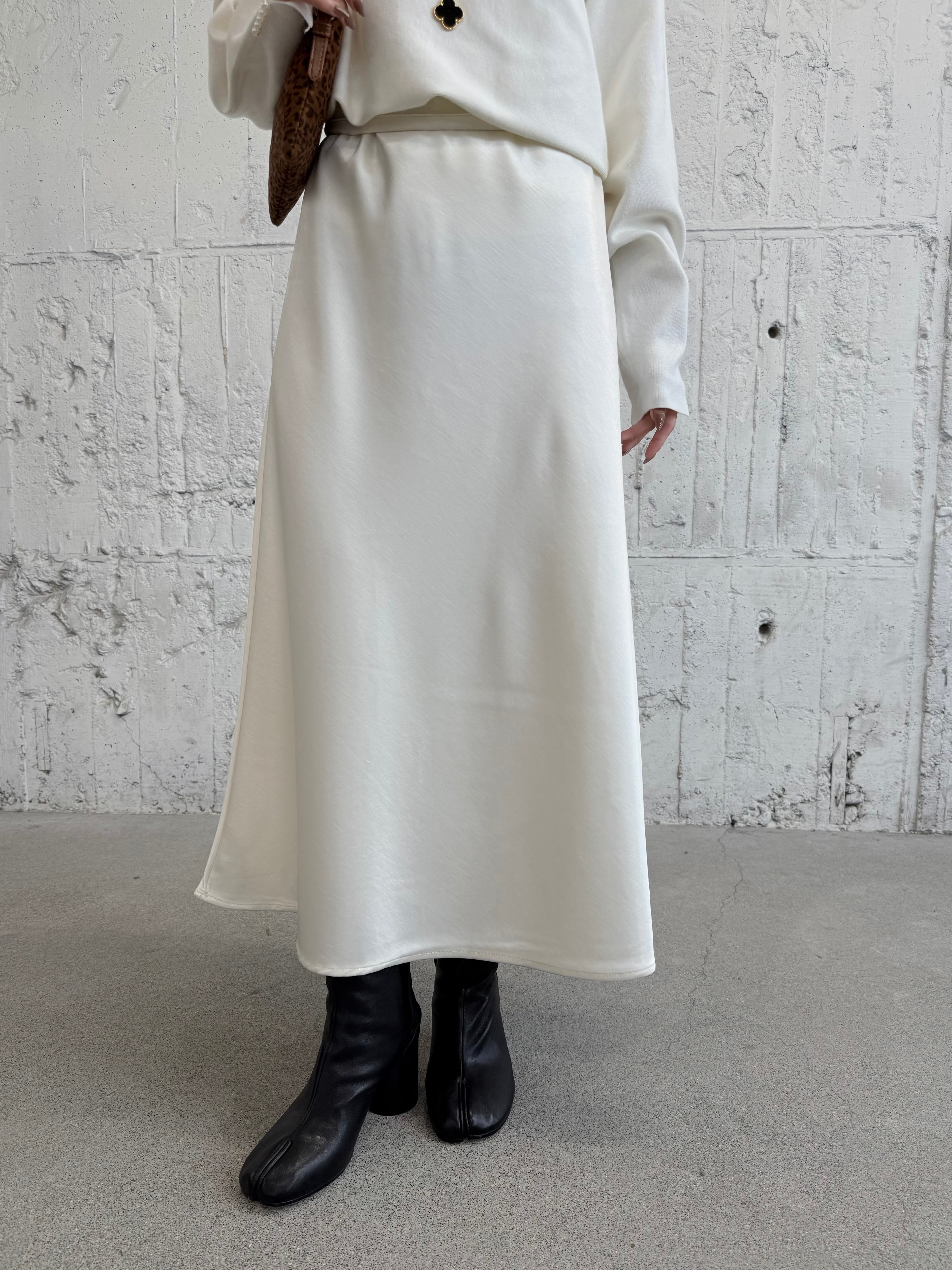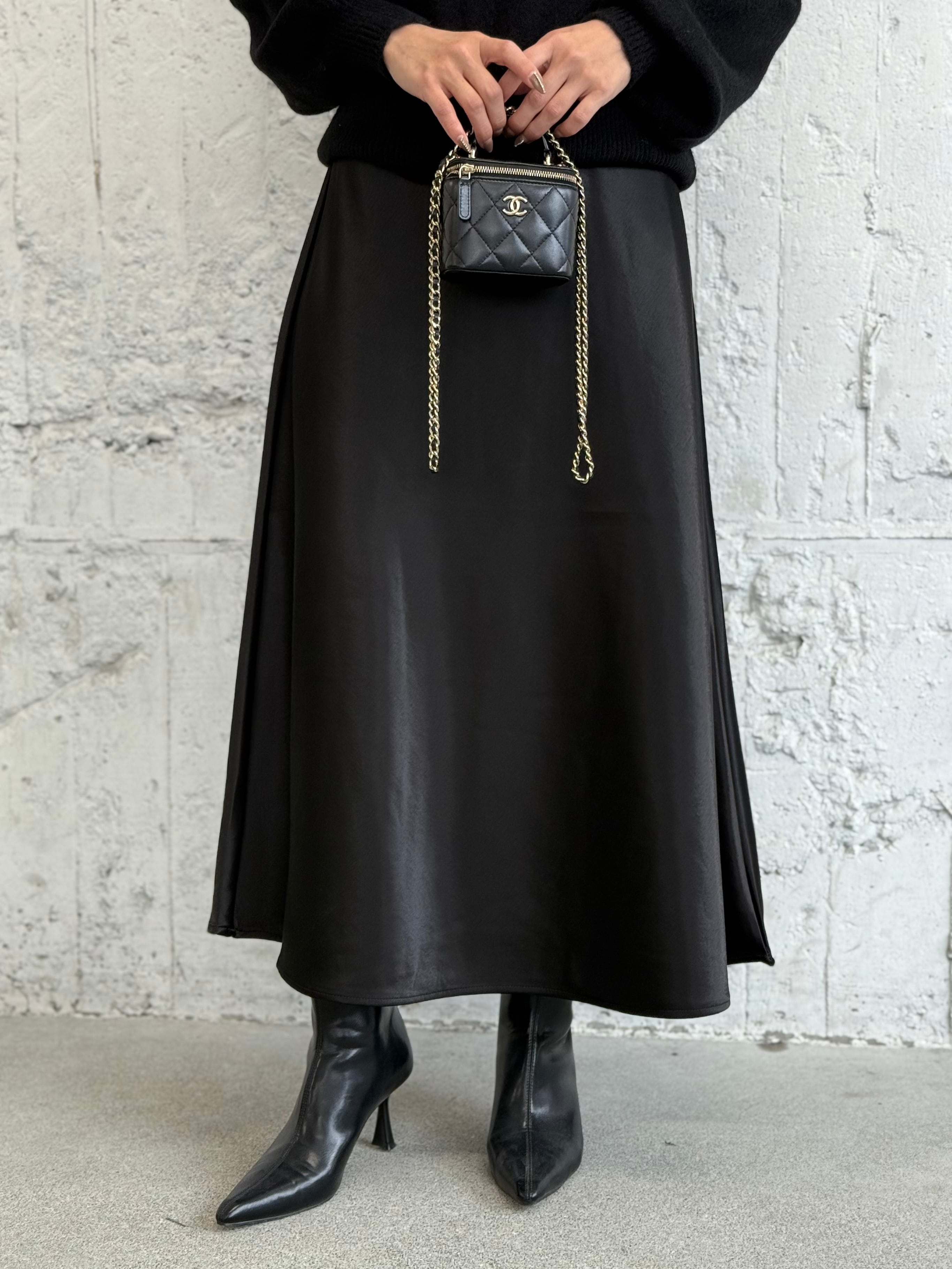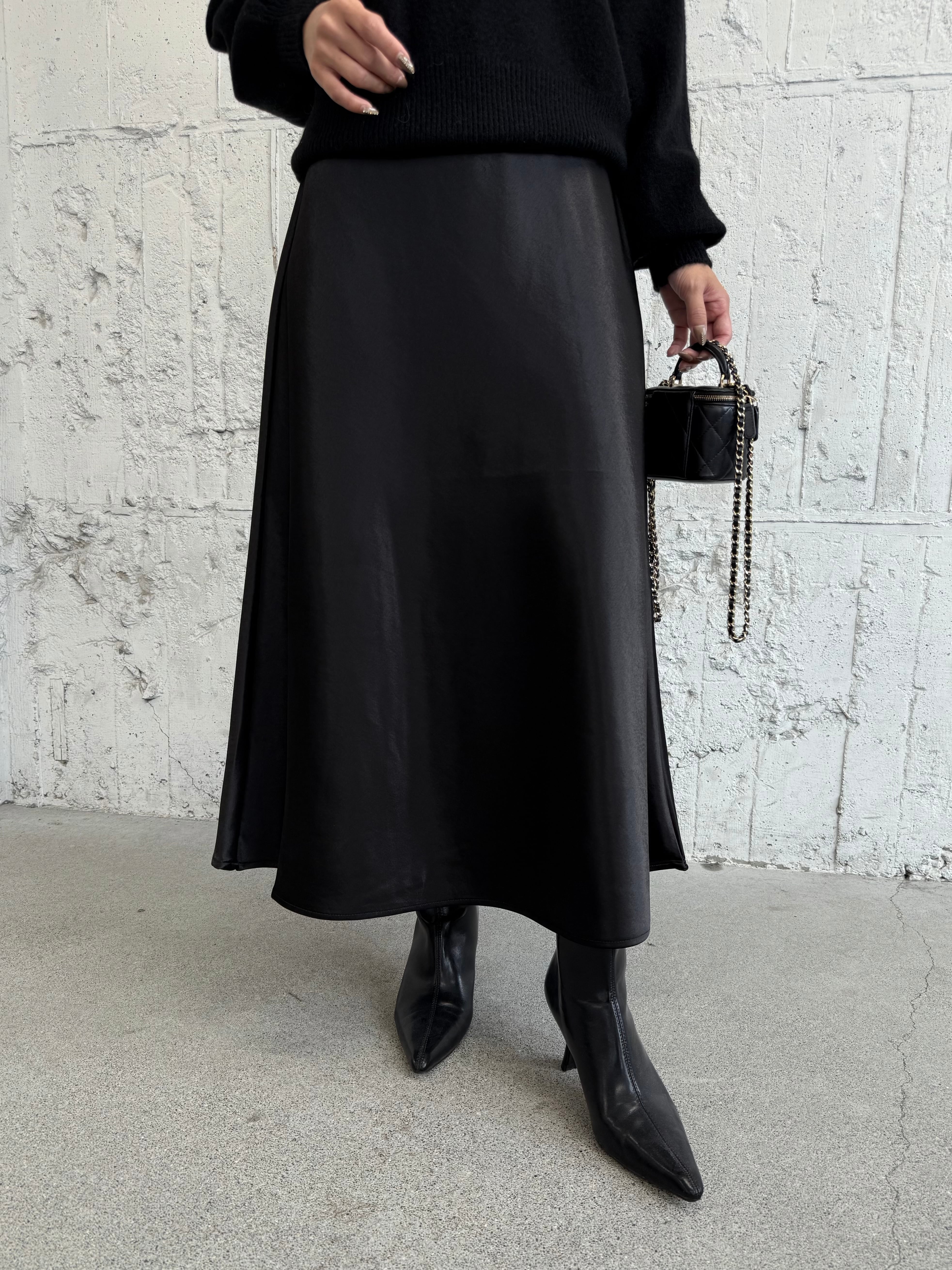 歩くたびに光を反射し、優雅に揺らめくシャイニー素材が魅力のAラインスカートです。