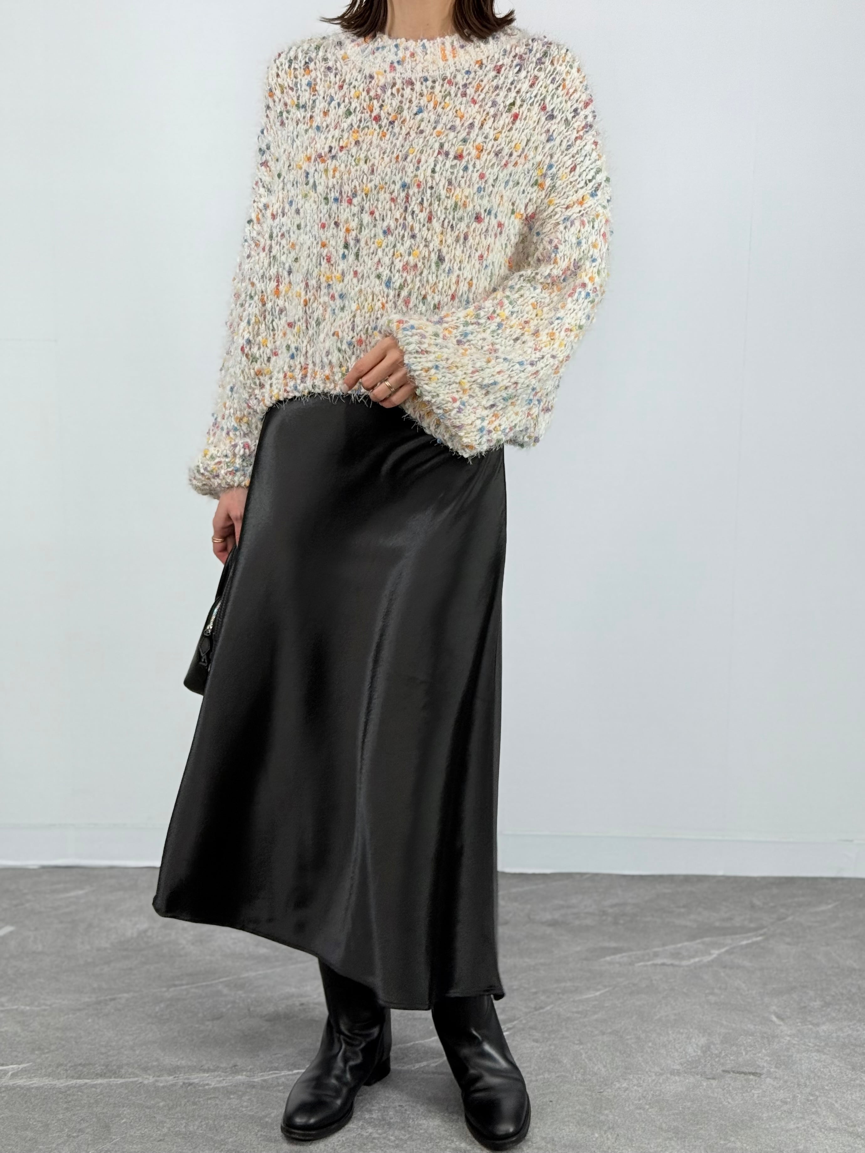 旬顔に 控えめながらも上品なサテンライクな光沢感が、シンプルな着こなしを一気にトレンドライクに格上げします。