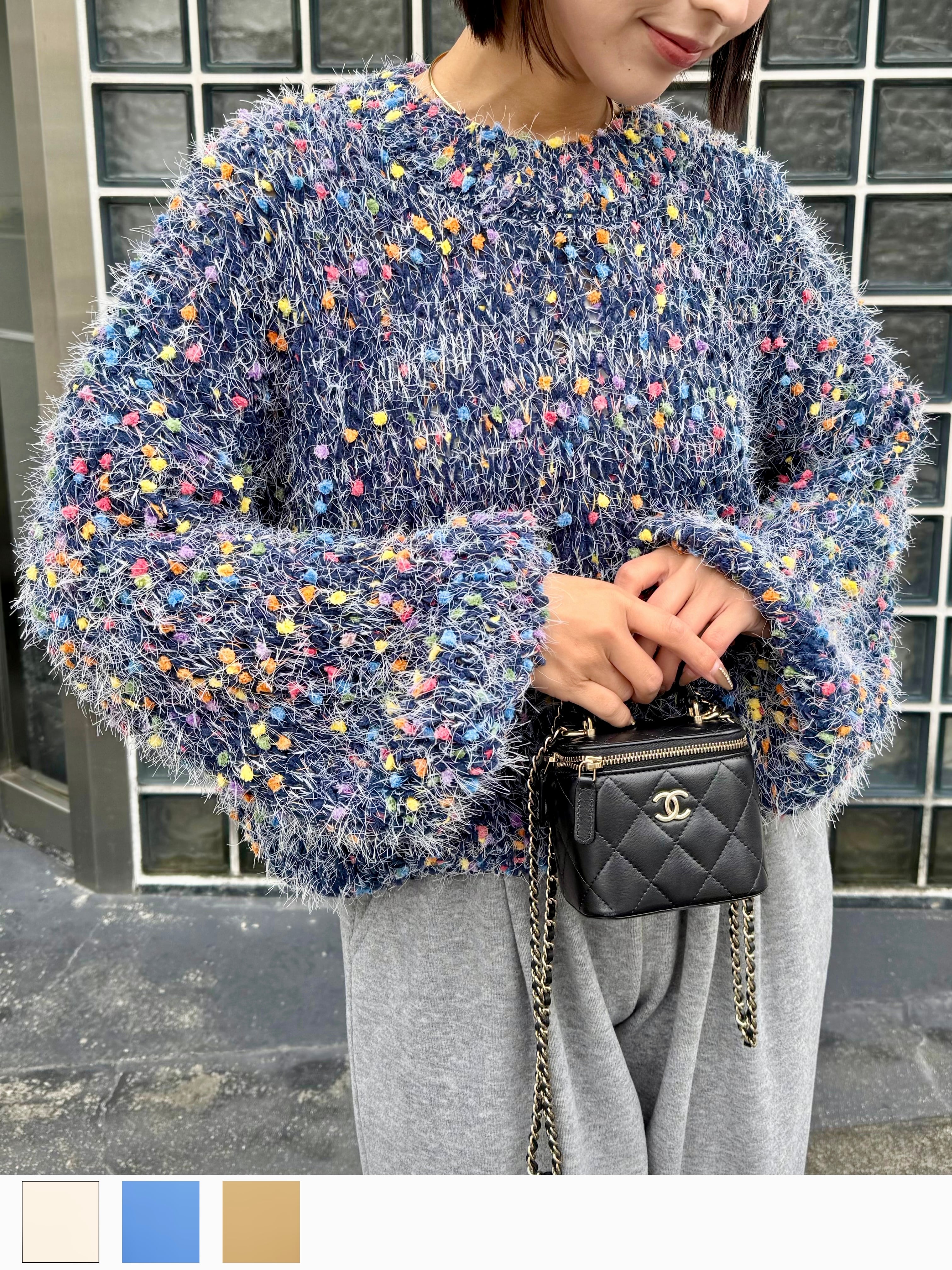繊細な色彩が織りなすデザイン が、シンプルなボトムスにも合わせやすく、コーデ全体をワンランクアップさせます。