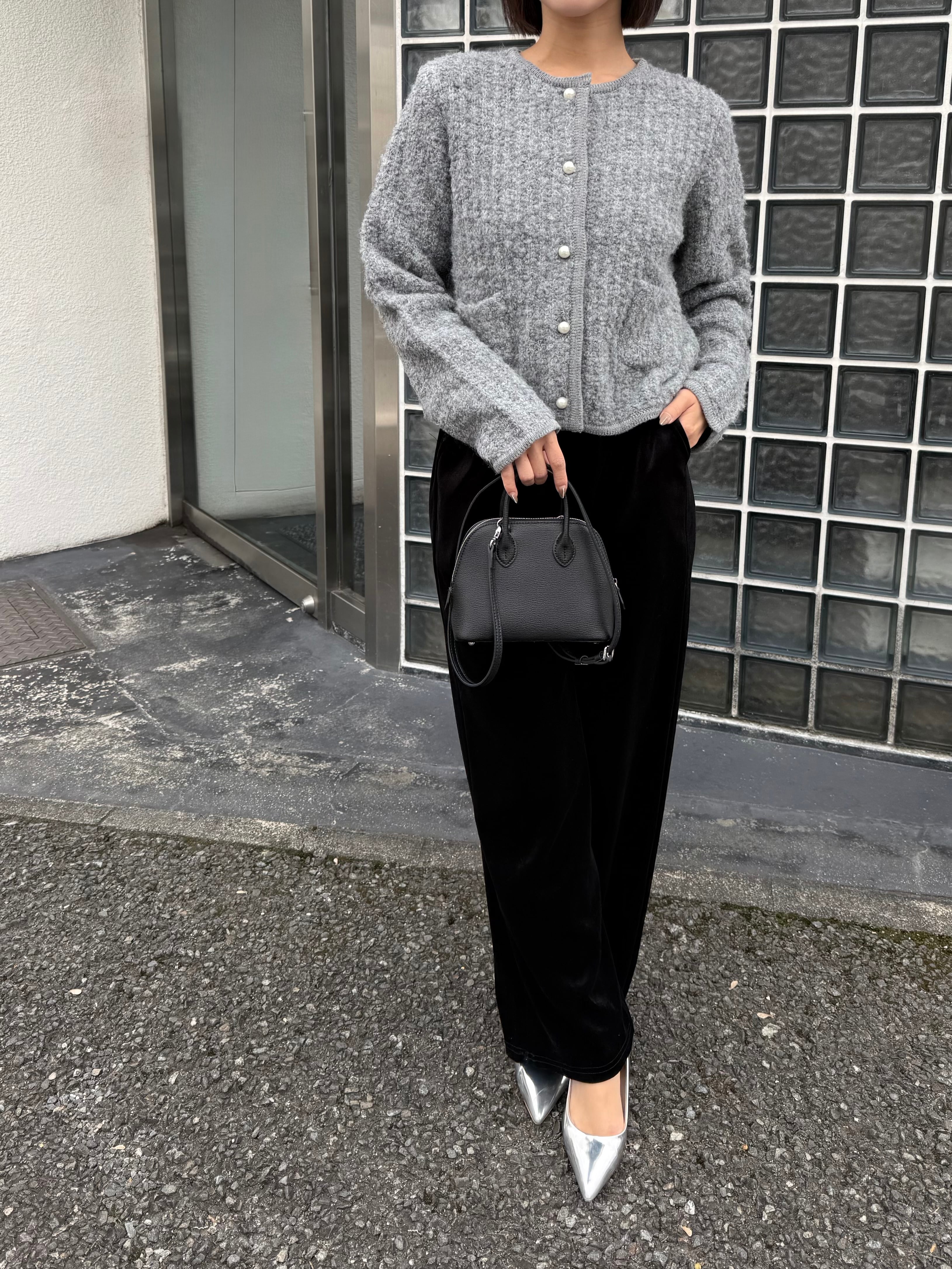 上品な光沢と心地よい肌触りのベロア素材は、ツヤを放ち、カジュアルになりすぎない上品な印象を与えます。