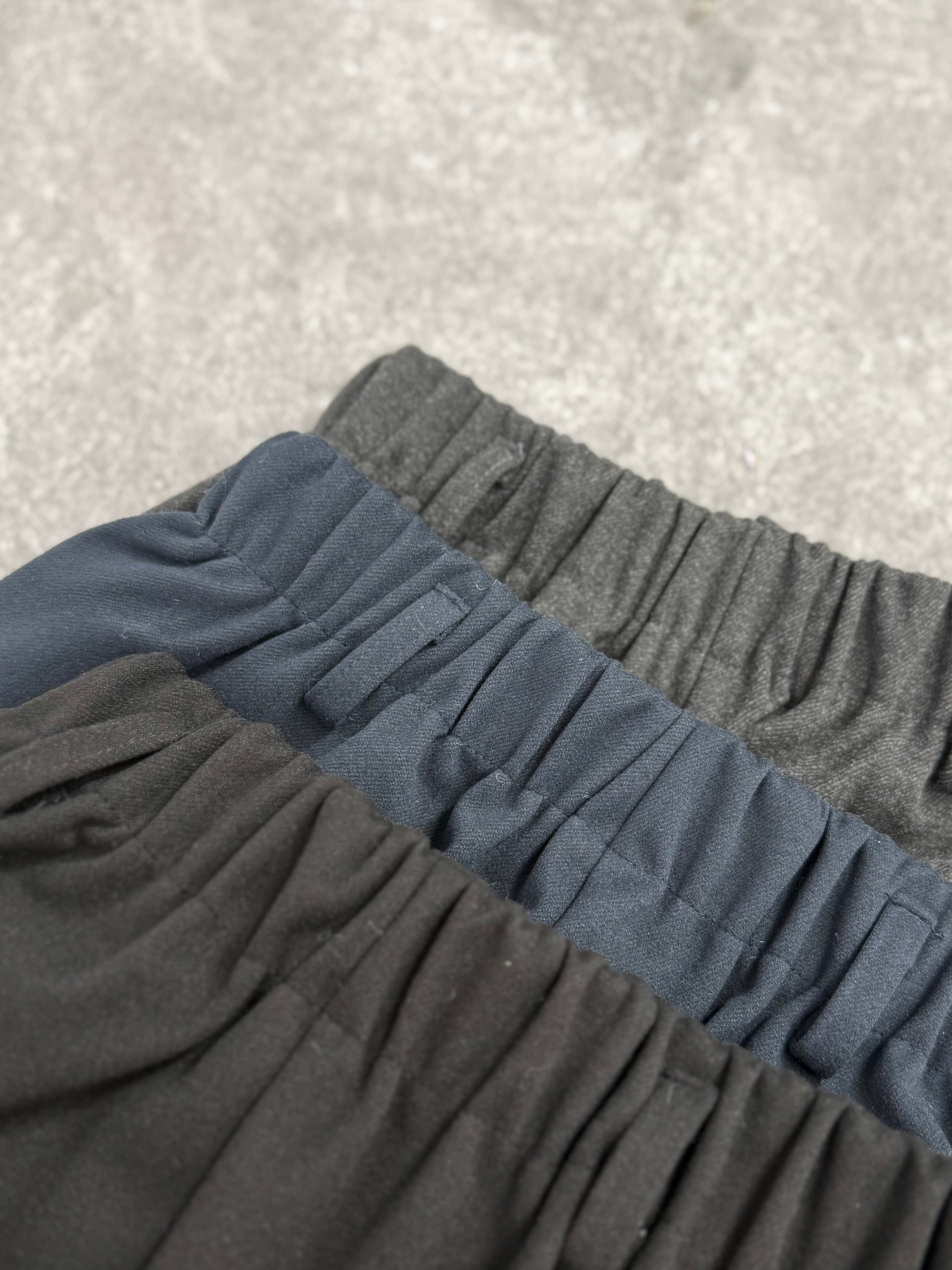 ロントはすっきりとした見た目を保ちつつ、背面はゴム仕様で快適なフィット感をキープ。