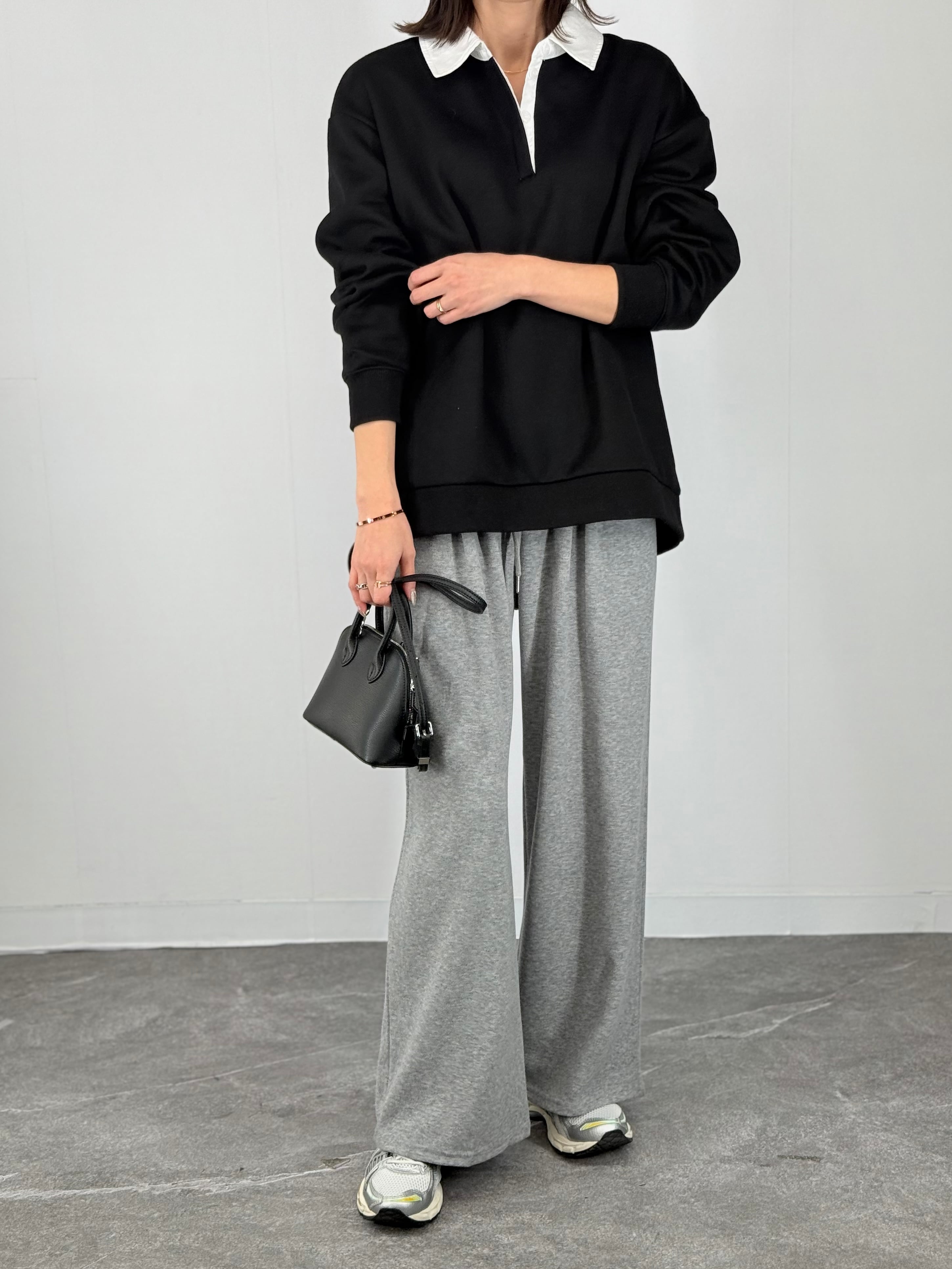 暖かな裏起毛素材とゆるシルエットで着心地は快適。
