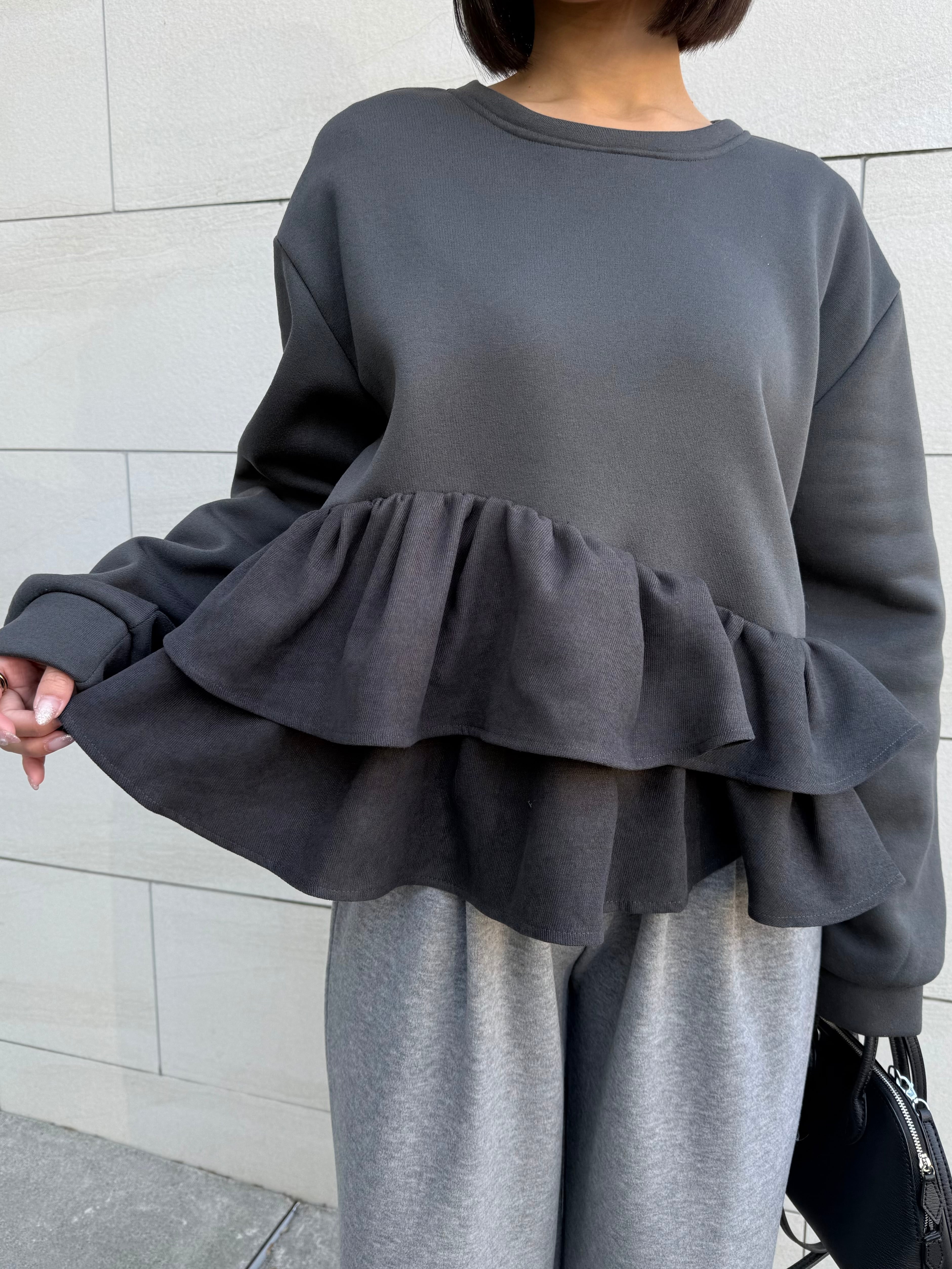 フリル部分はコーデュロイ調素材を使用し、ボリューム感と立体感をしっかりキープ!