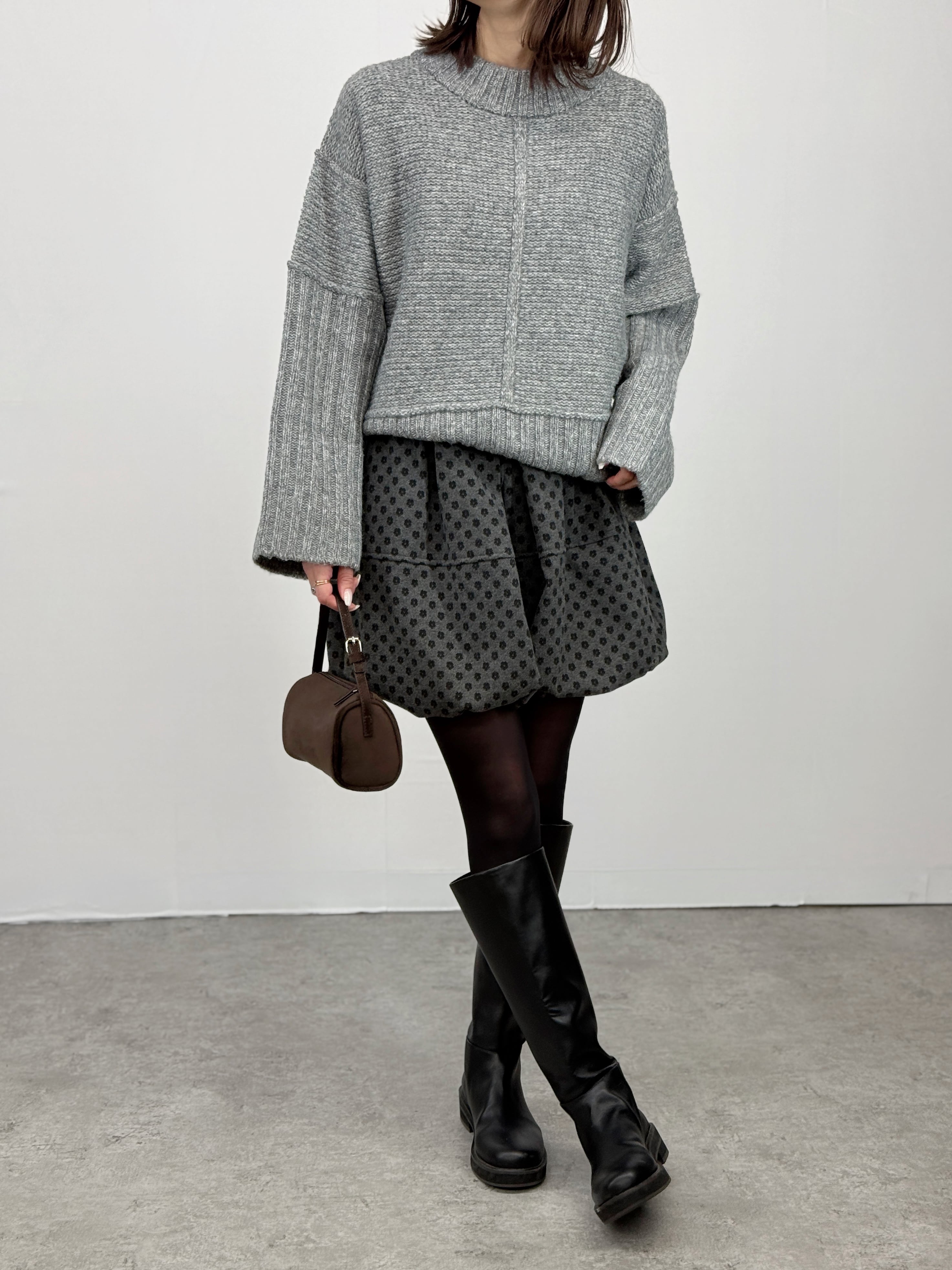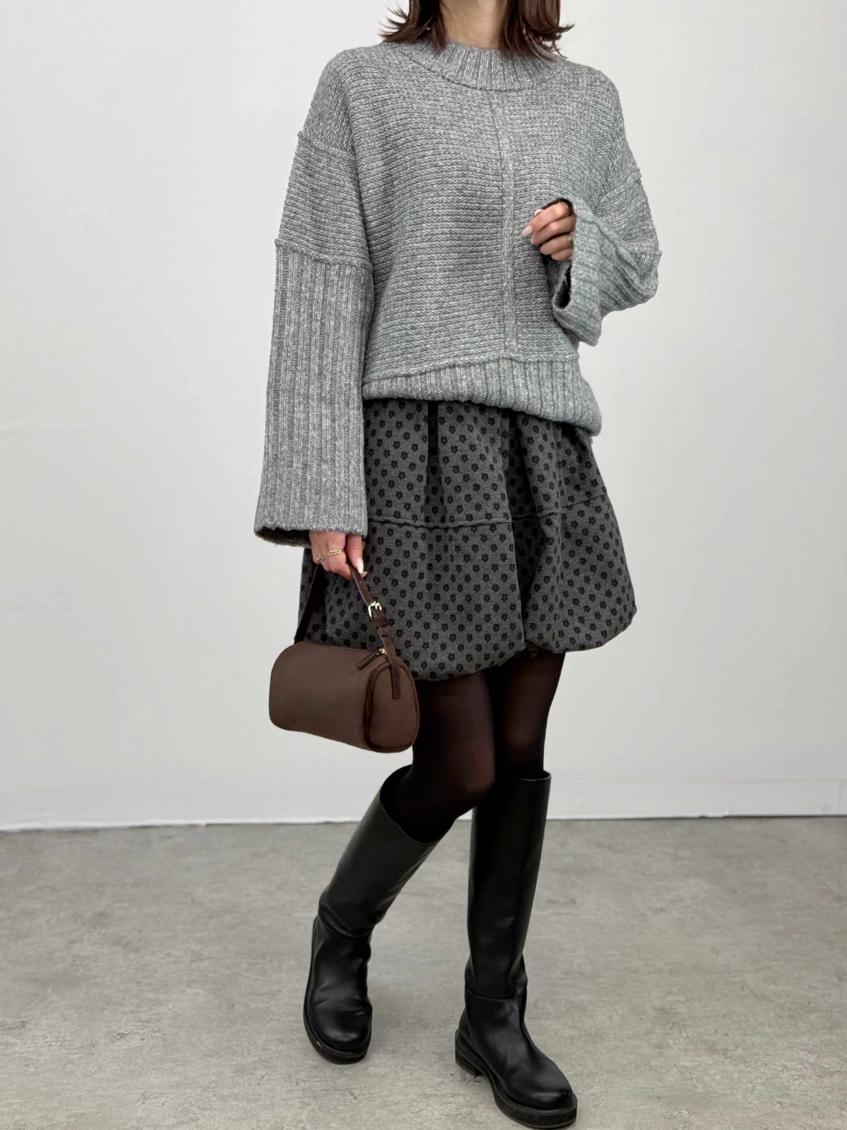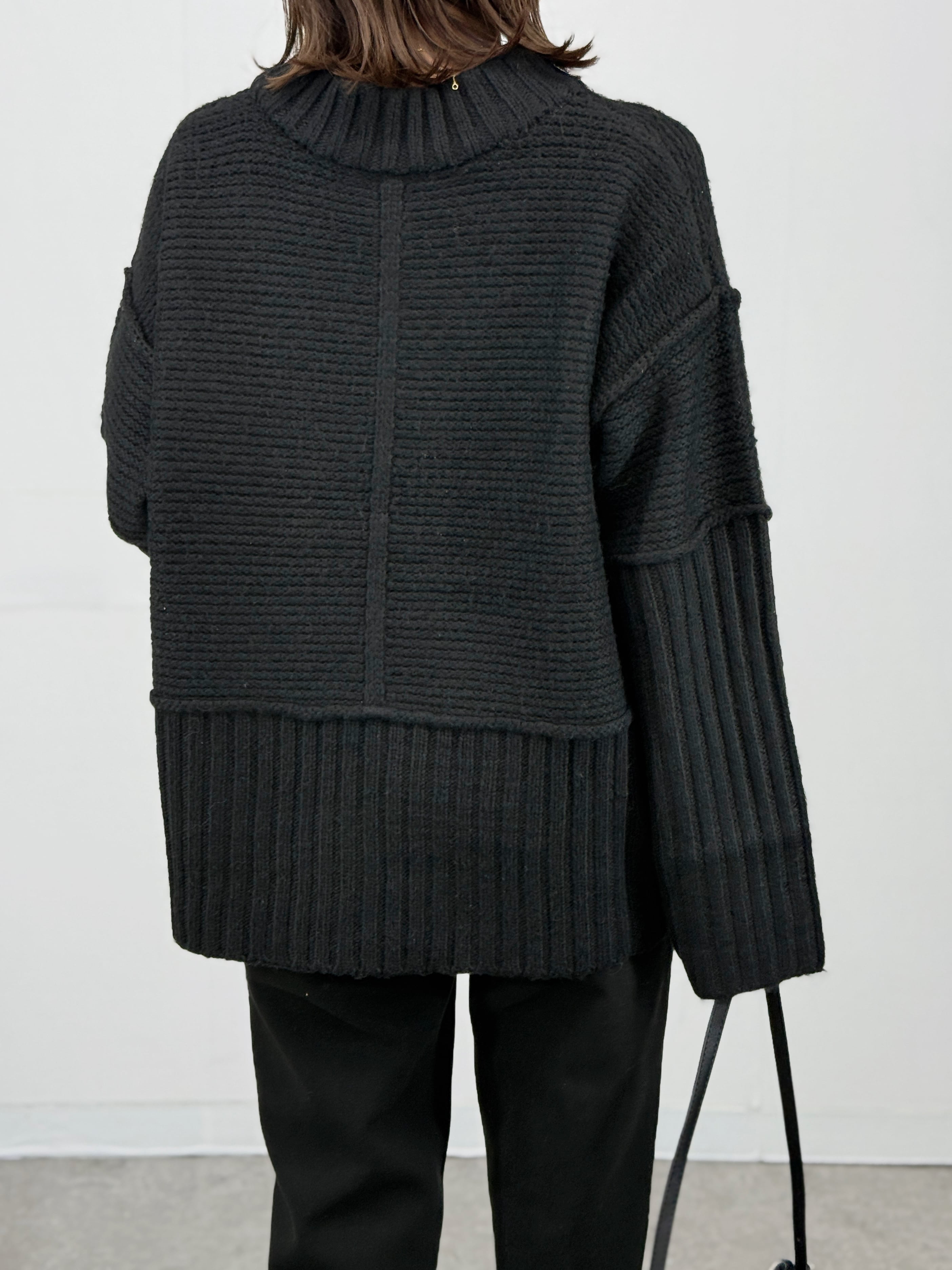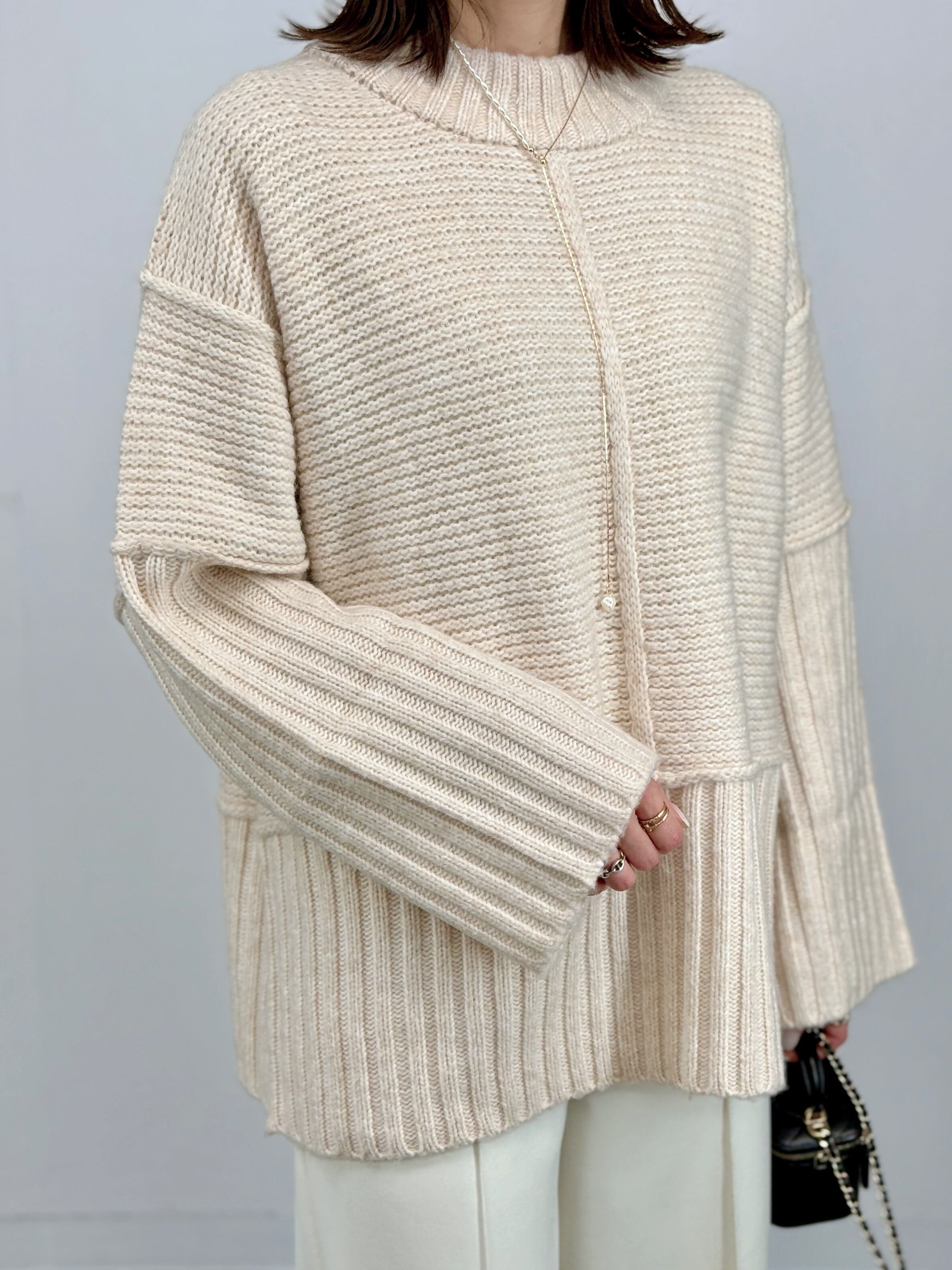 程よい厚みとざっくりとした編み地が、身体のラインを拾わず優しくカバー。