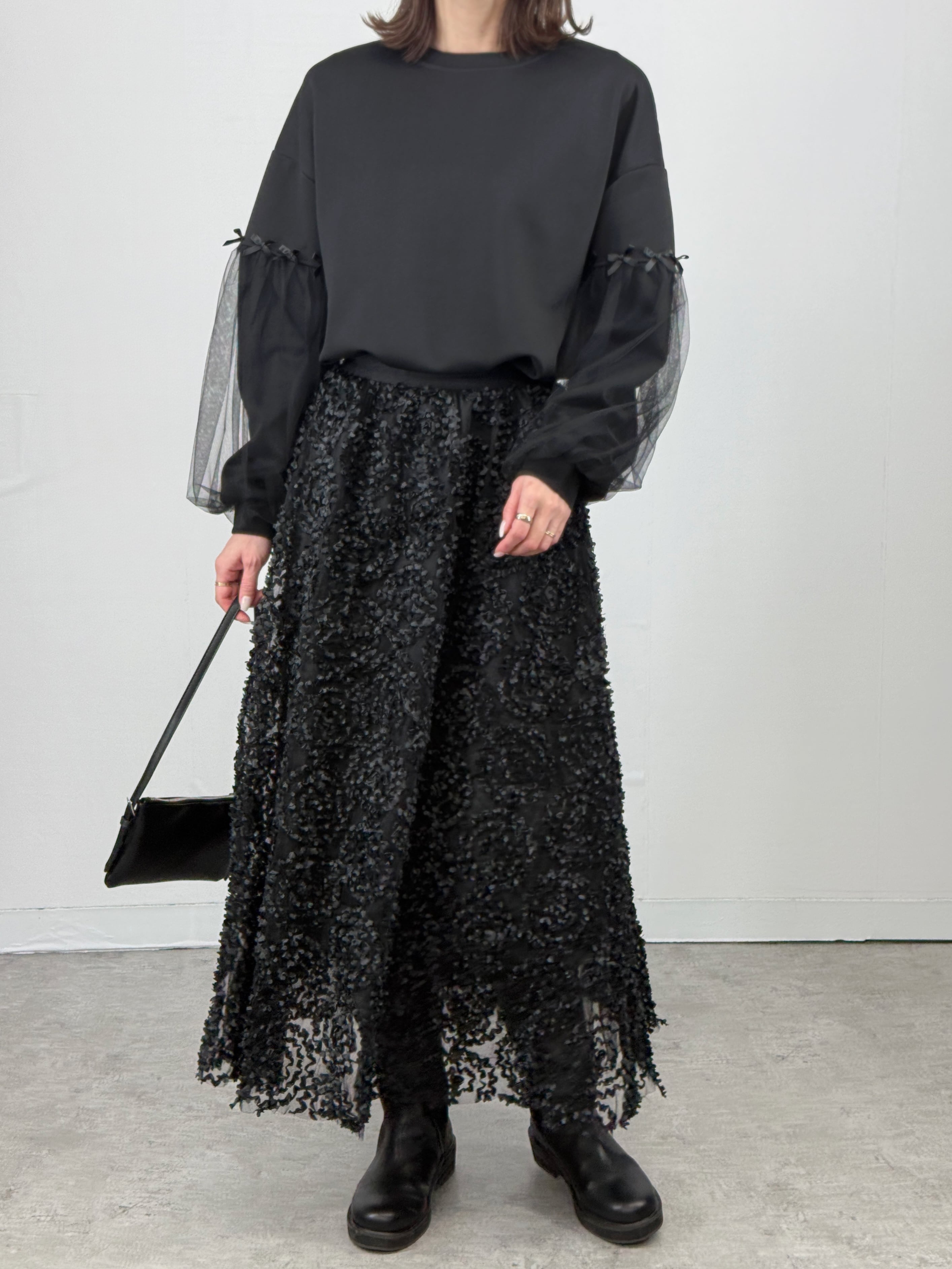 立体感のある刺繍デザインが、華やかさを添えてくれます。