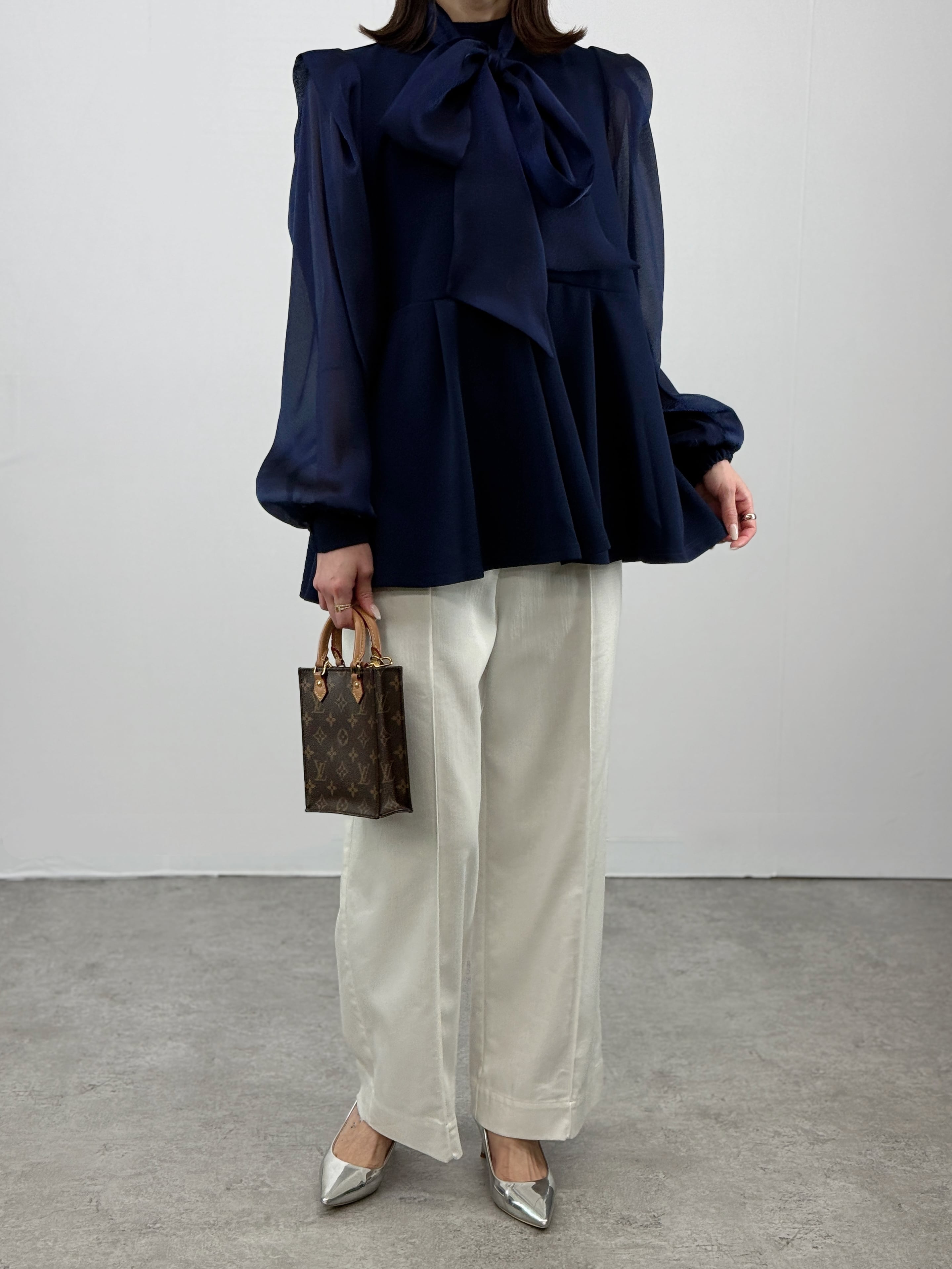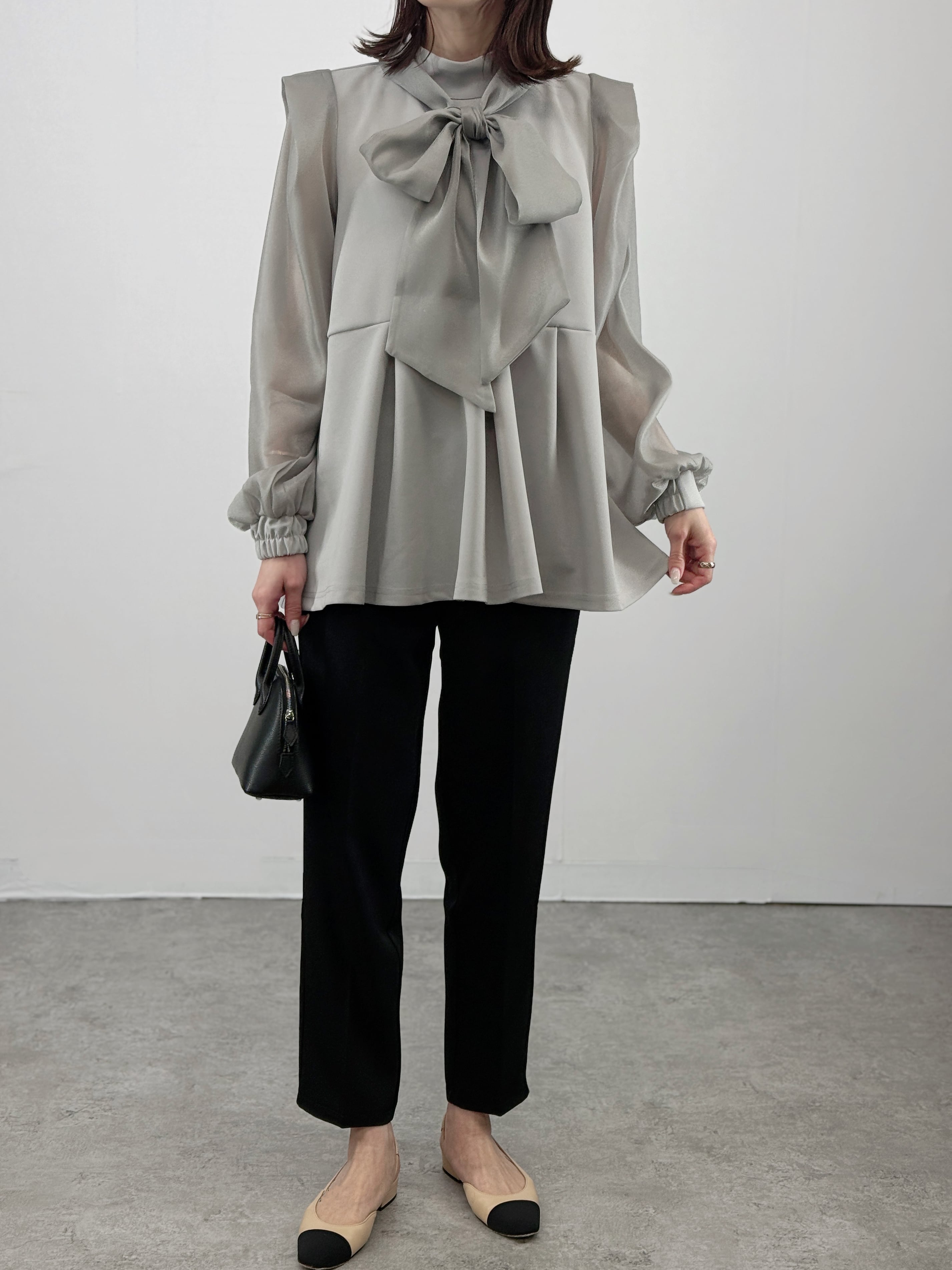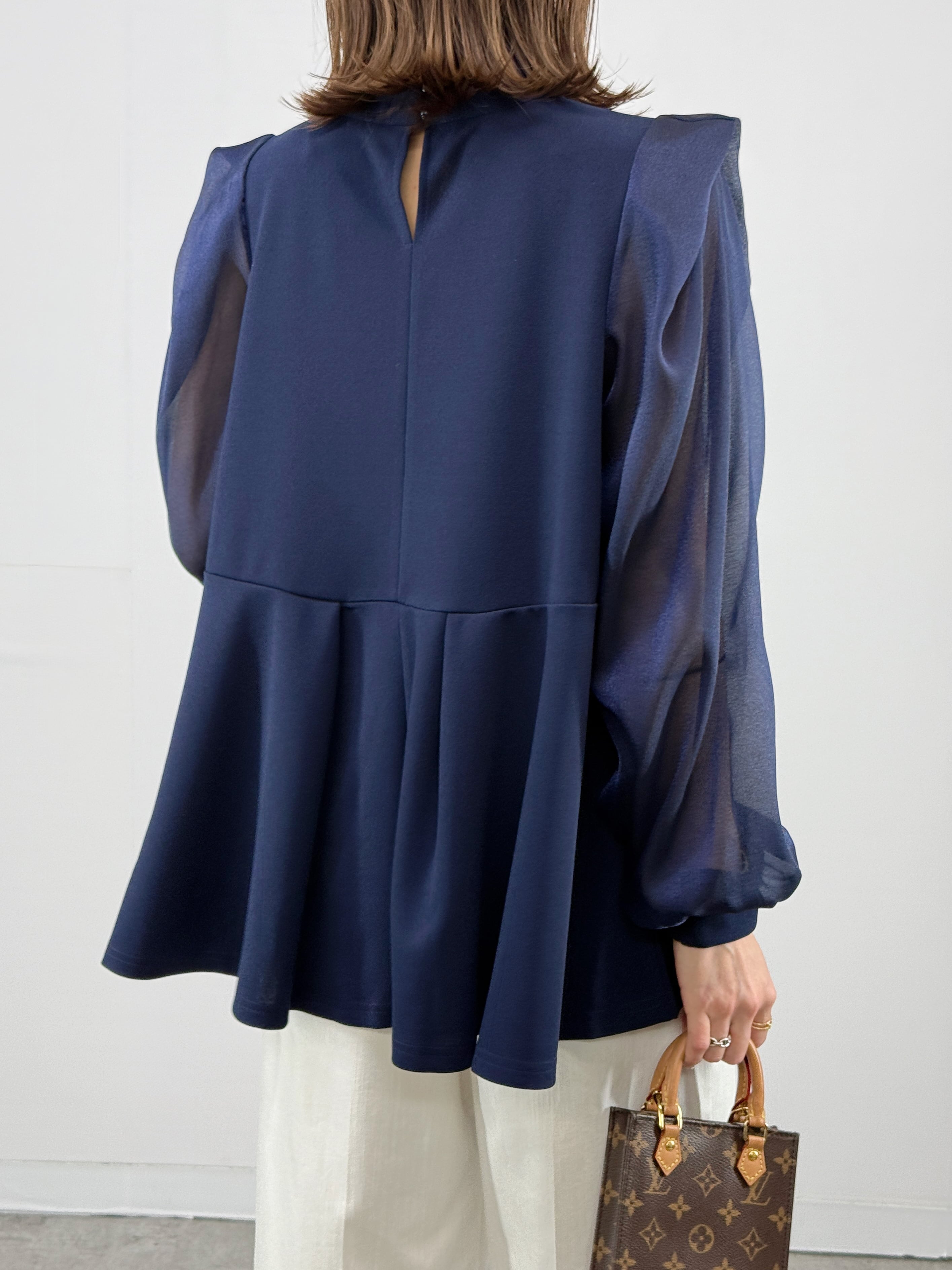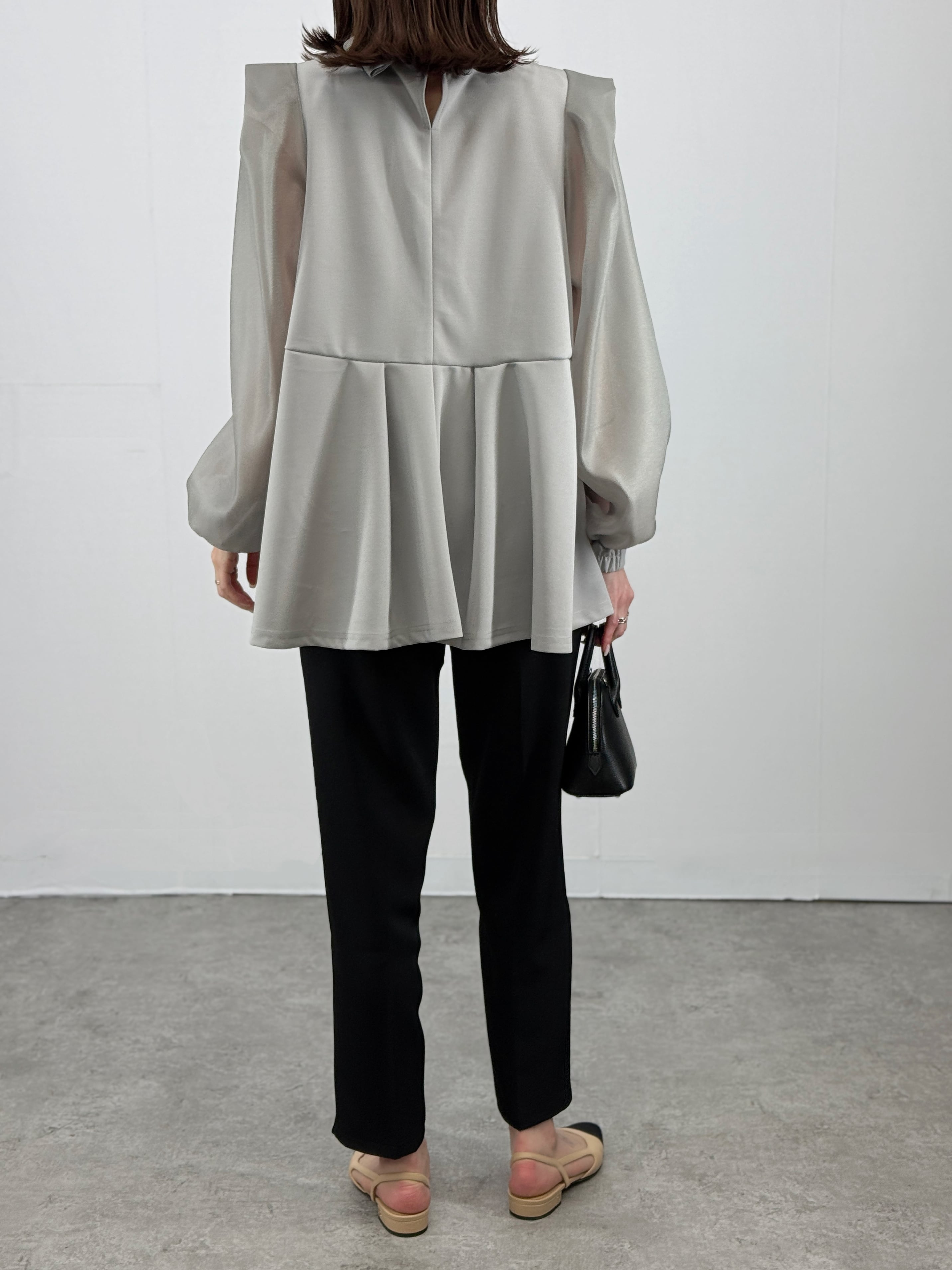 透け感のシアー袖が、女性らしい抜け感を演出します。
