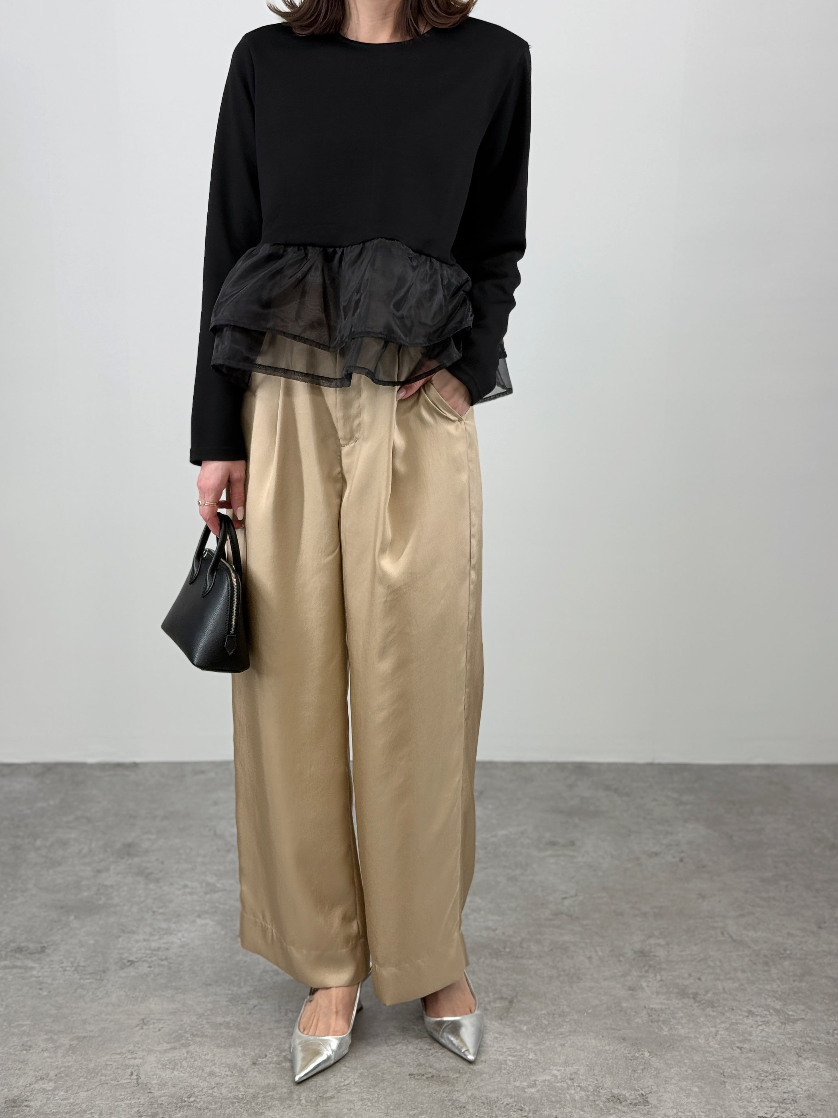 さらに、ふんわりとしたボリューム感がウエスト周りをカモフラージュしてくれるので、細見え効果も期待できます。