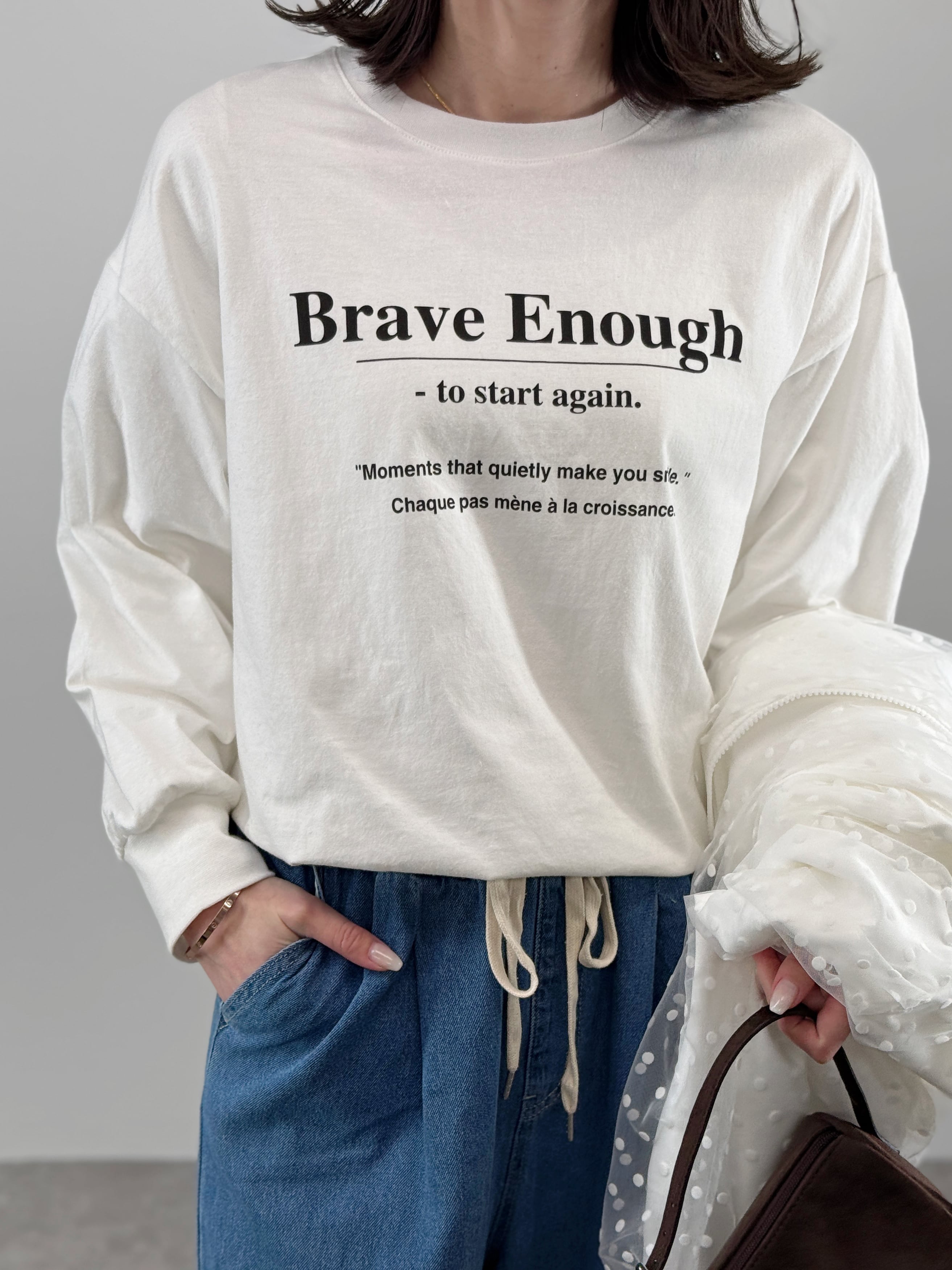 英字ロゴが目を引くと同時に、こなれ感漂う、大人女子のロゴロンT。