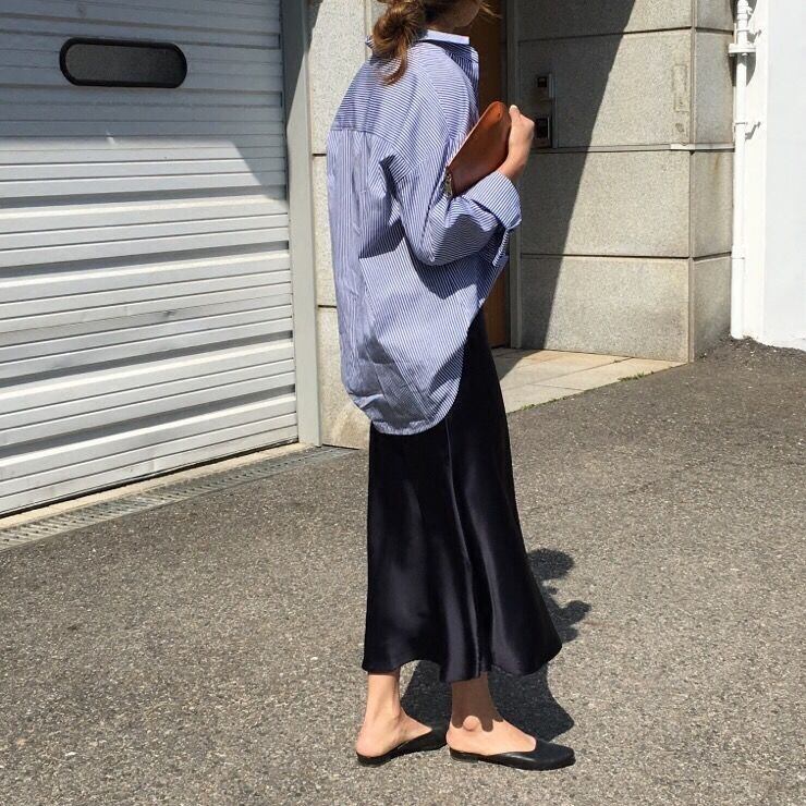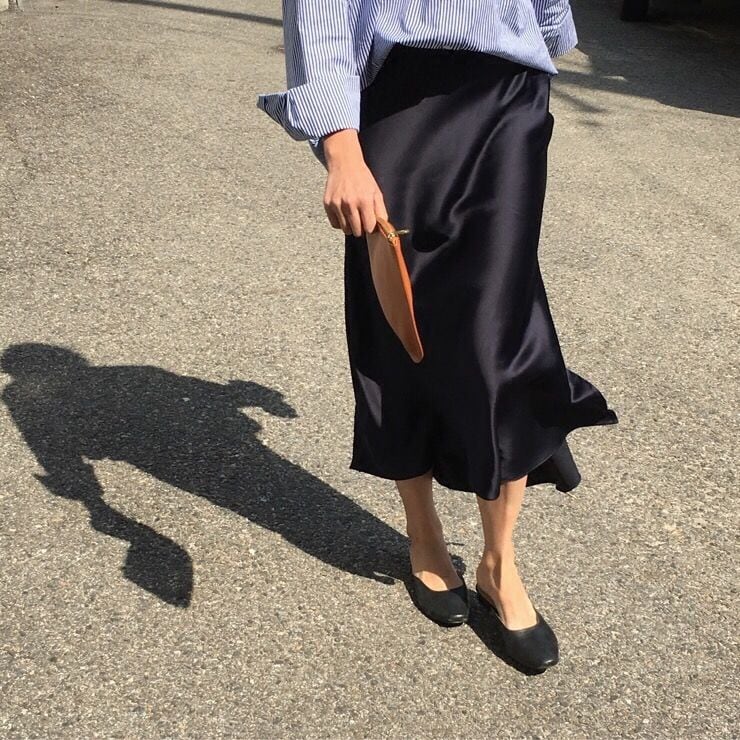 光沢感が魅力のサテン素材で仕上げた、ライトフレアスカートです。
