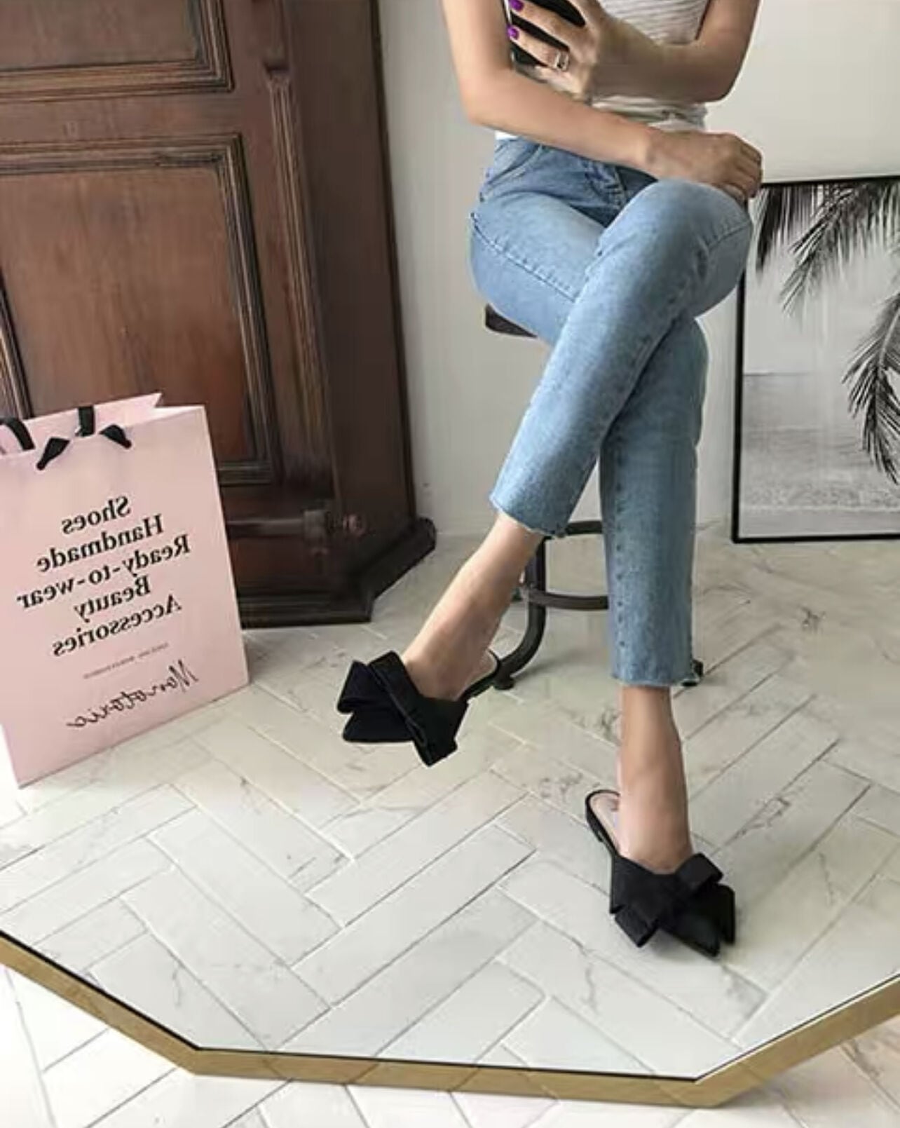 ◆一部即納◆リボンフラットミュール(即納:1-4営業日/予約:1-2週間程でお届け)