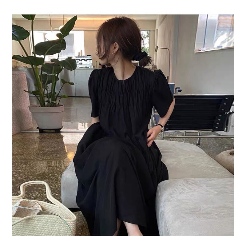 ◆予約◆半袖ギャザーフレアワンピース(ご注文から1-2週間程でお届け)