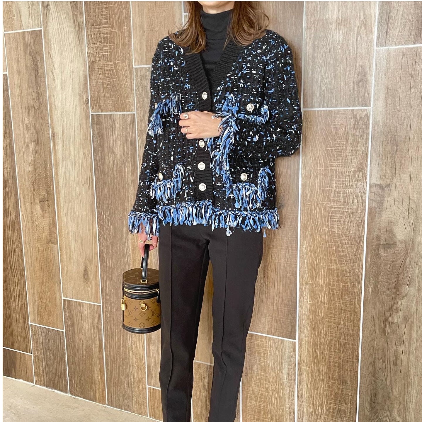ツイード調のカーディガンは