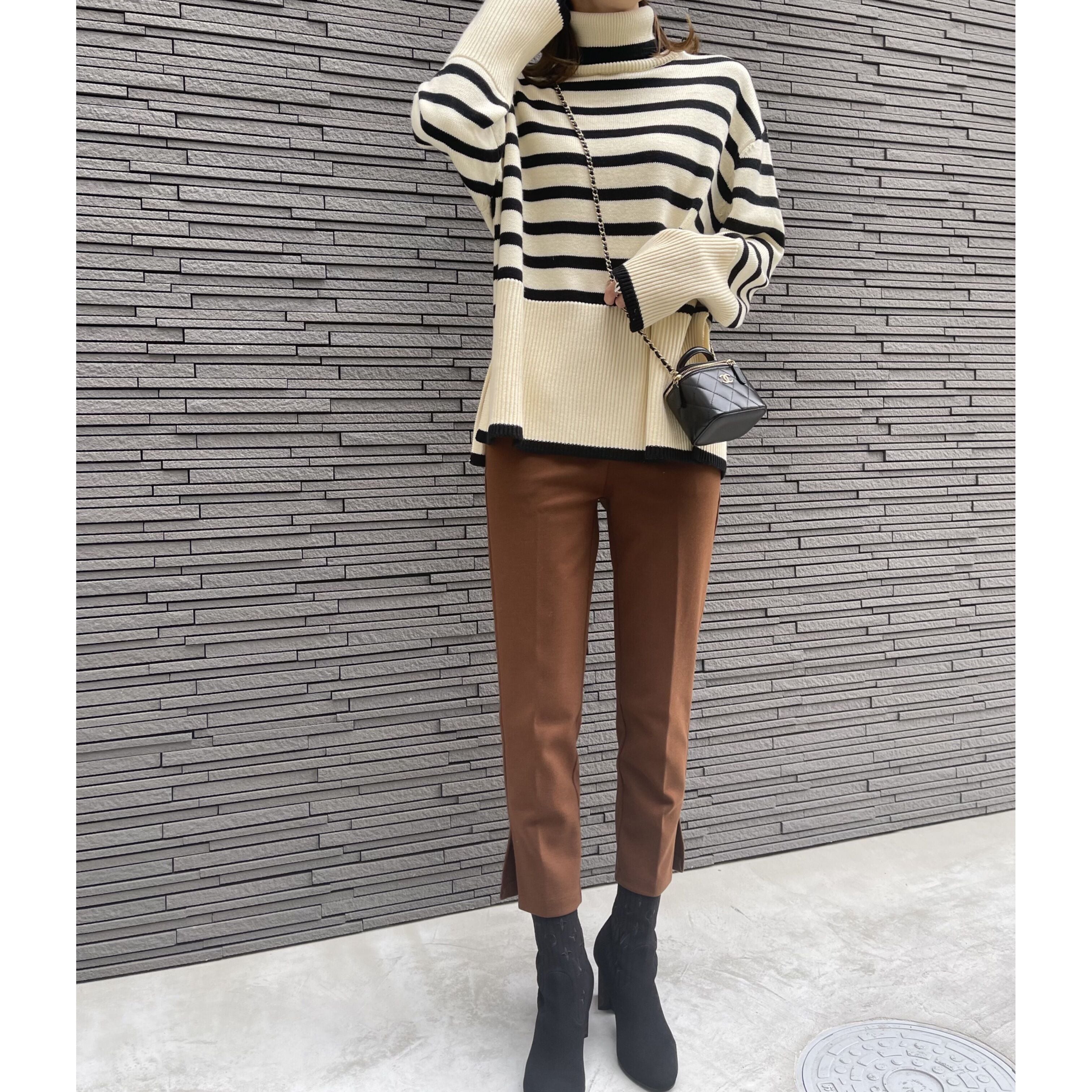 リクエストの多かったスリットタイプの冬素材パンツ。