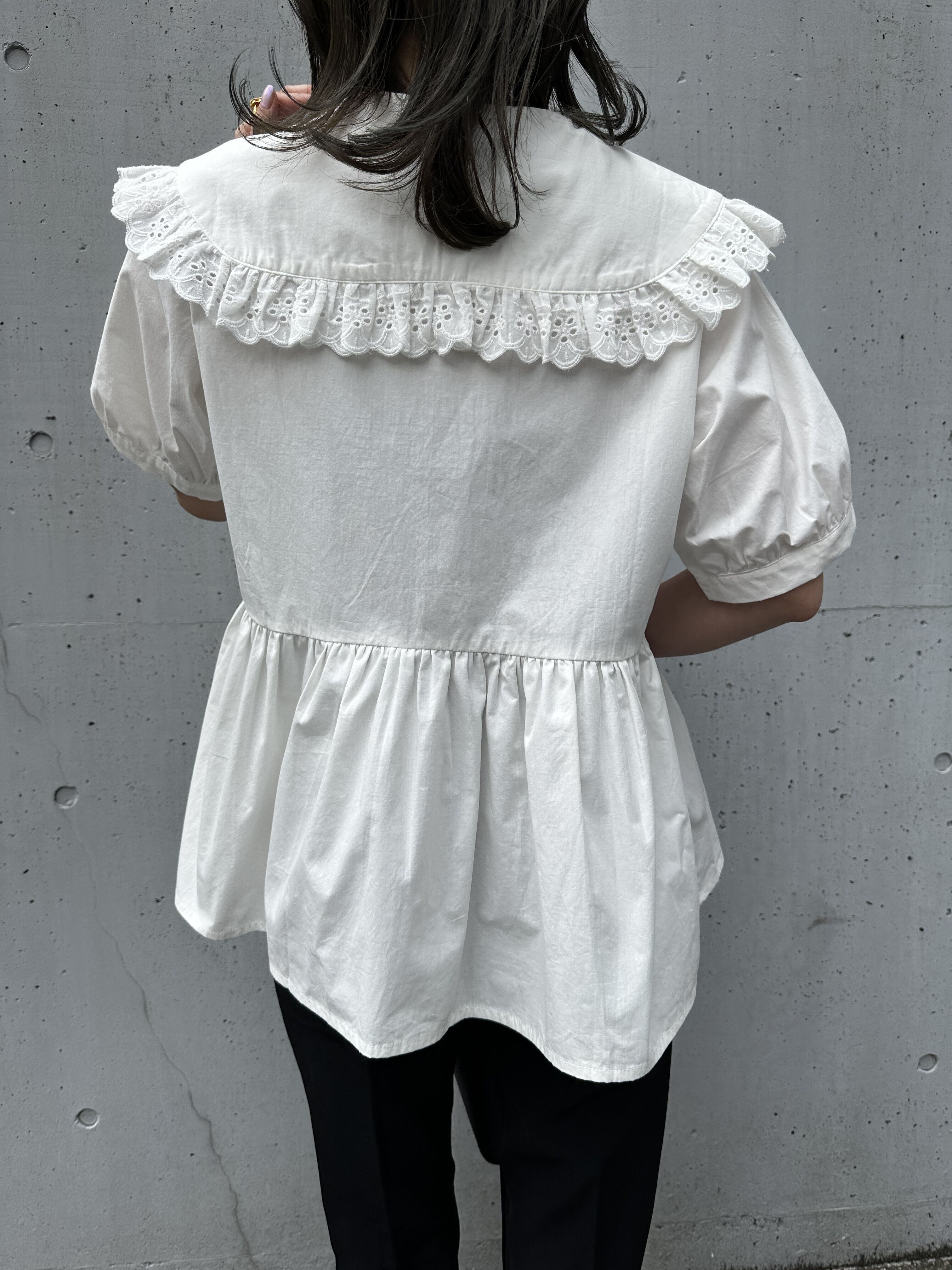 襟部分にはカットワーク加工のフリル仕様で華やかさUP◎