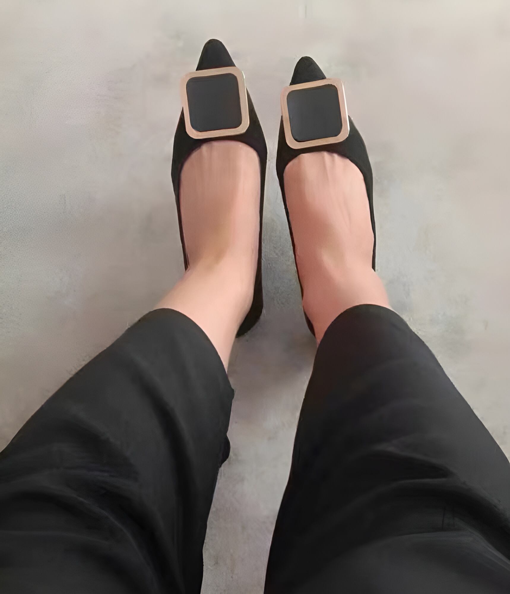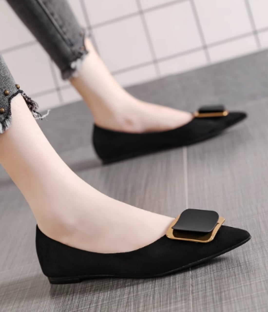 ◆予約◆スクエアモチーフスエードフラットシューズ(ご注文から1-2週間程でお届け)