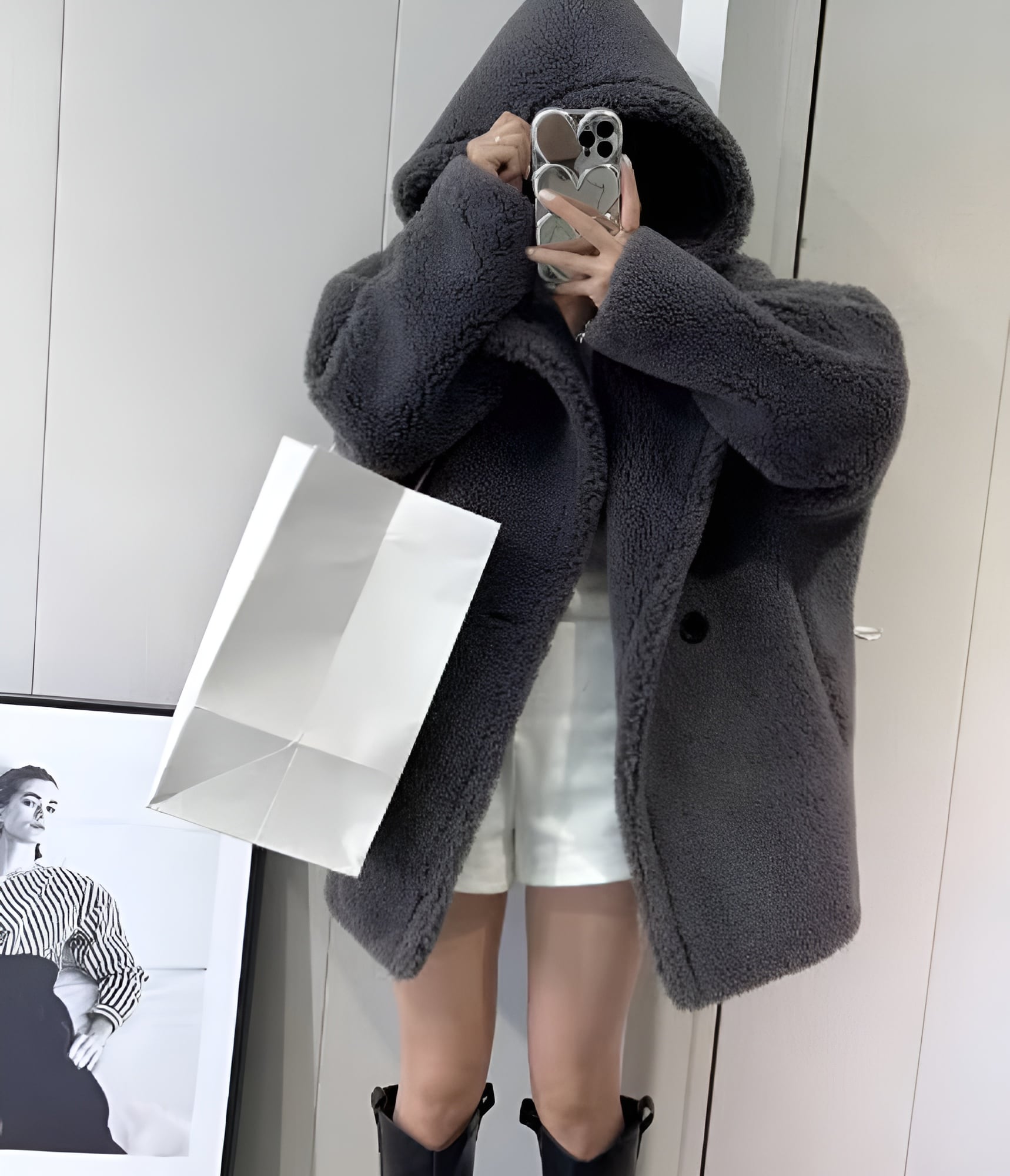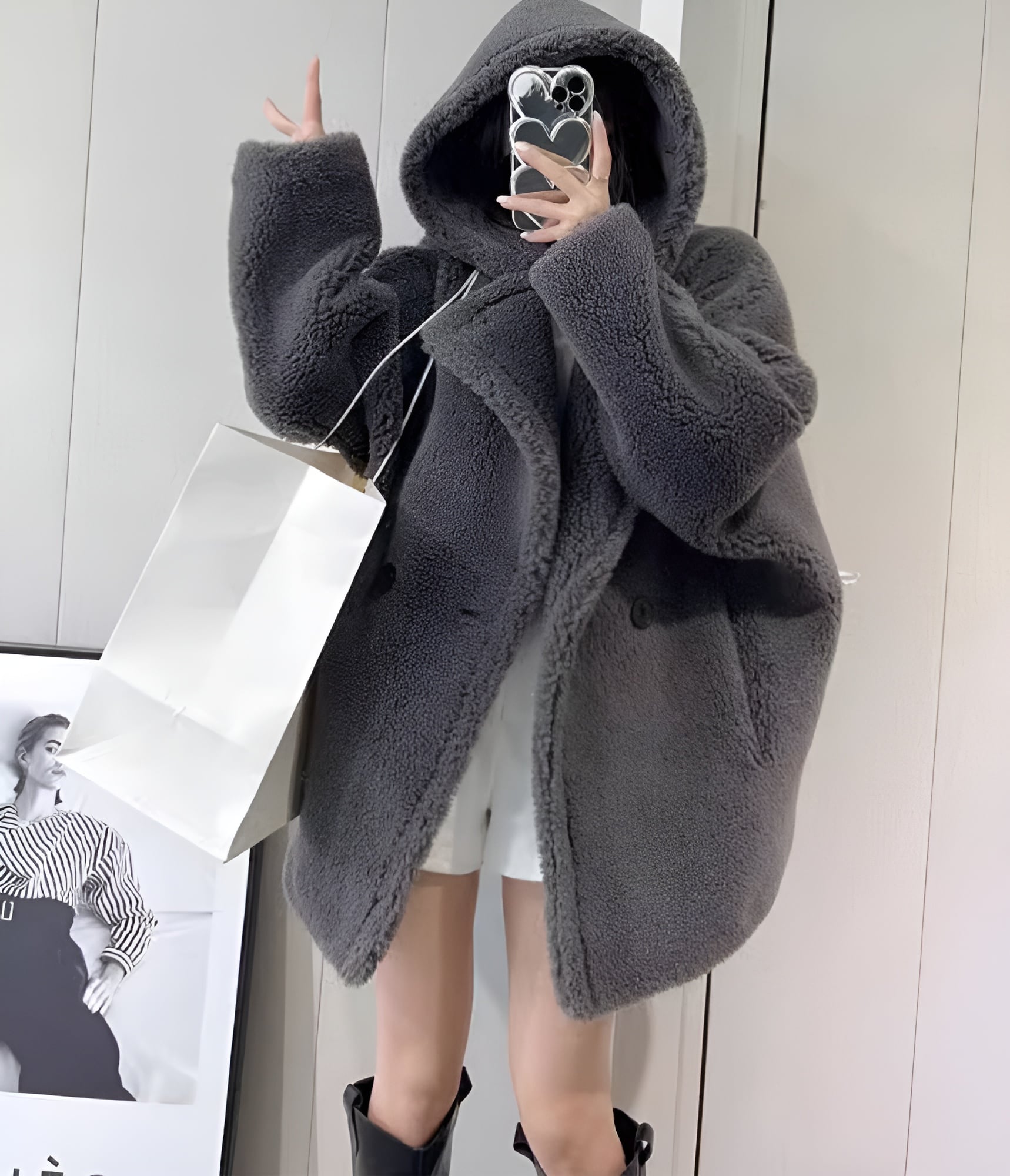 フード付きなので、より寒い日にはしっかりと防寒対策ができますよ♡
