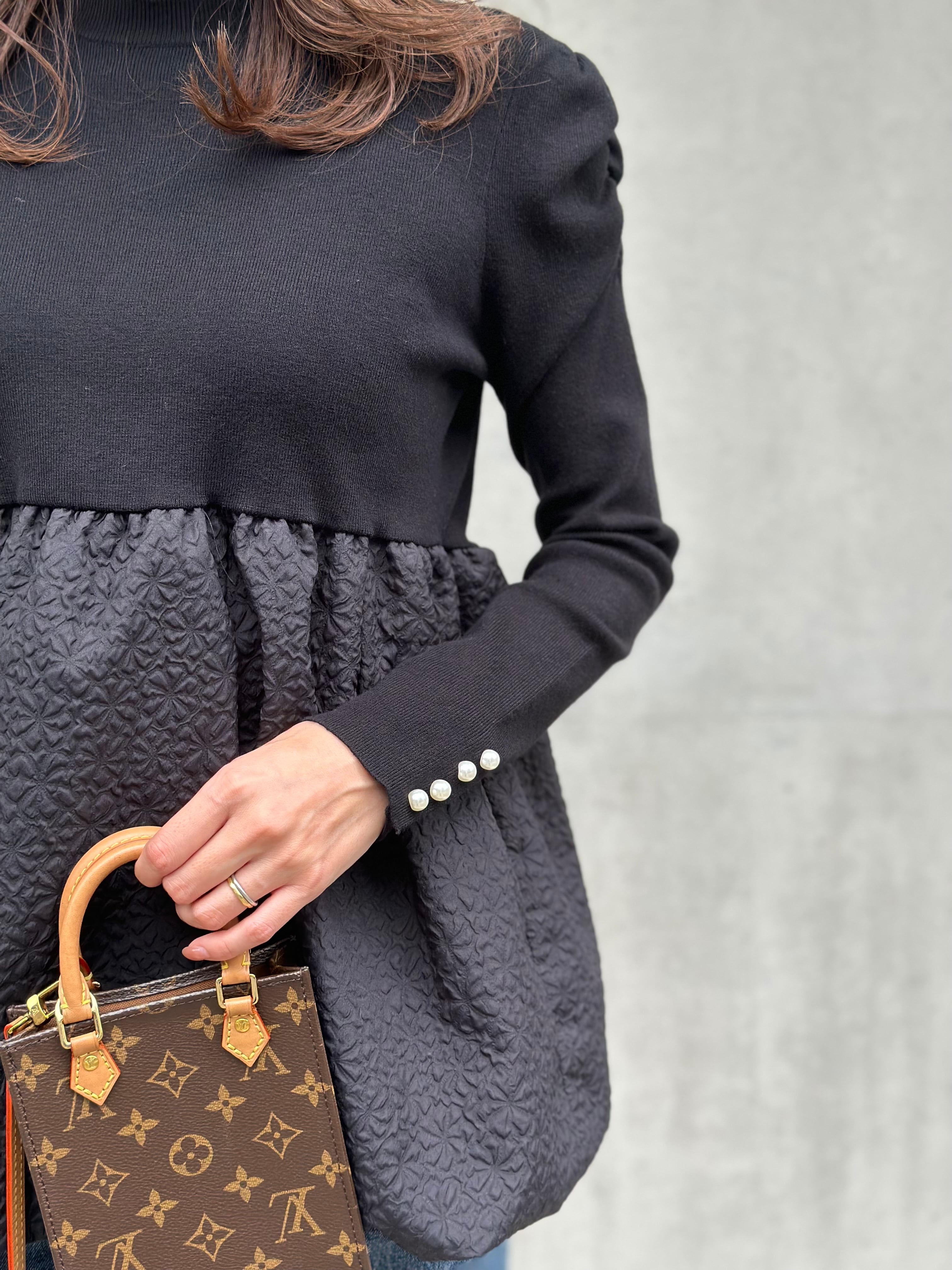 ◆即納◆スリーブパールジャガードドッキングニット(ご注文から1-4営業日でお届け)