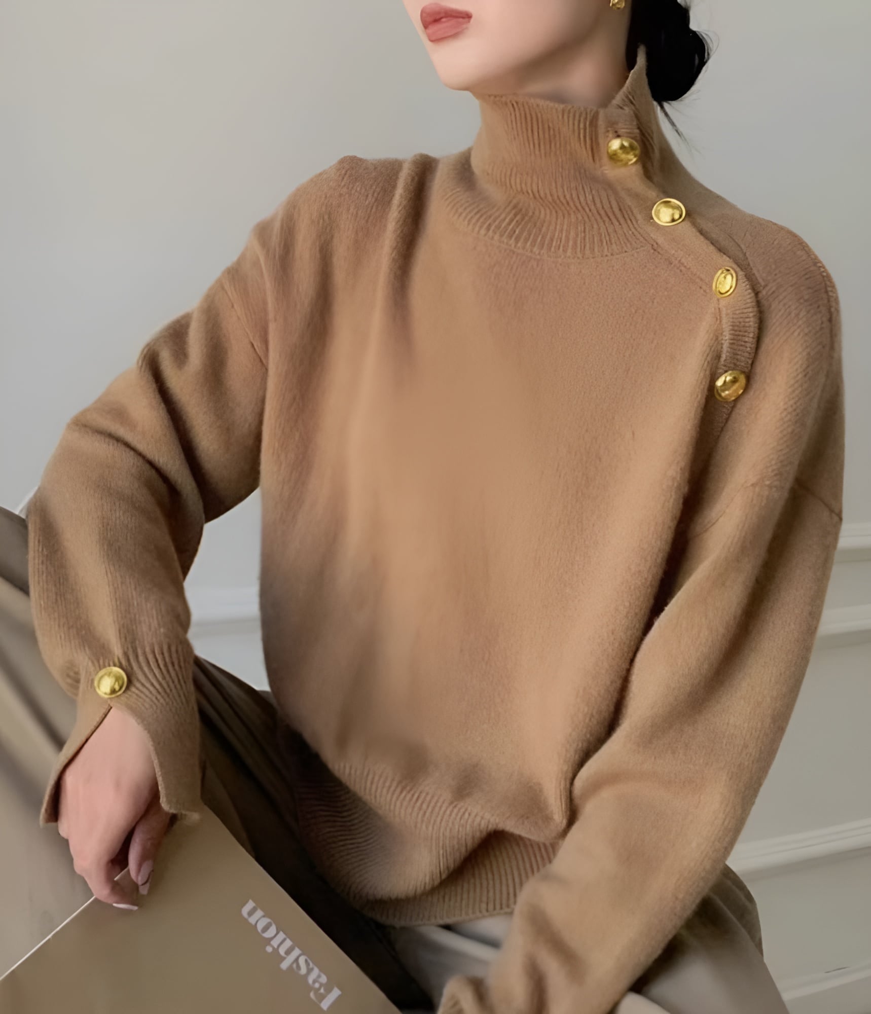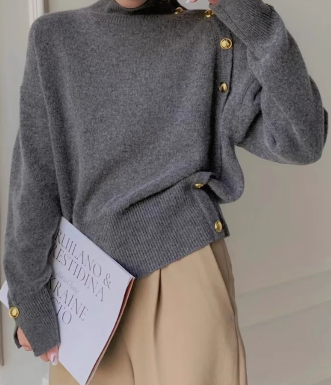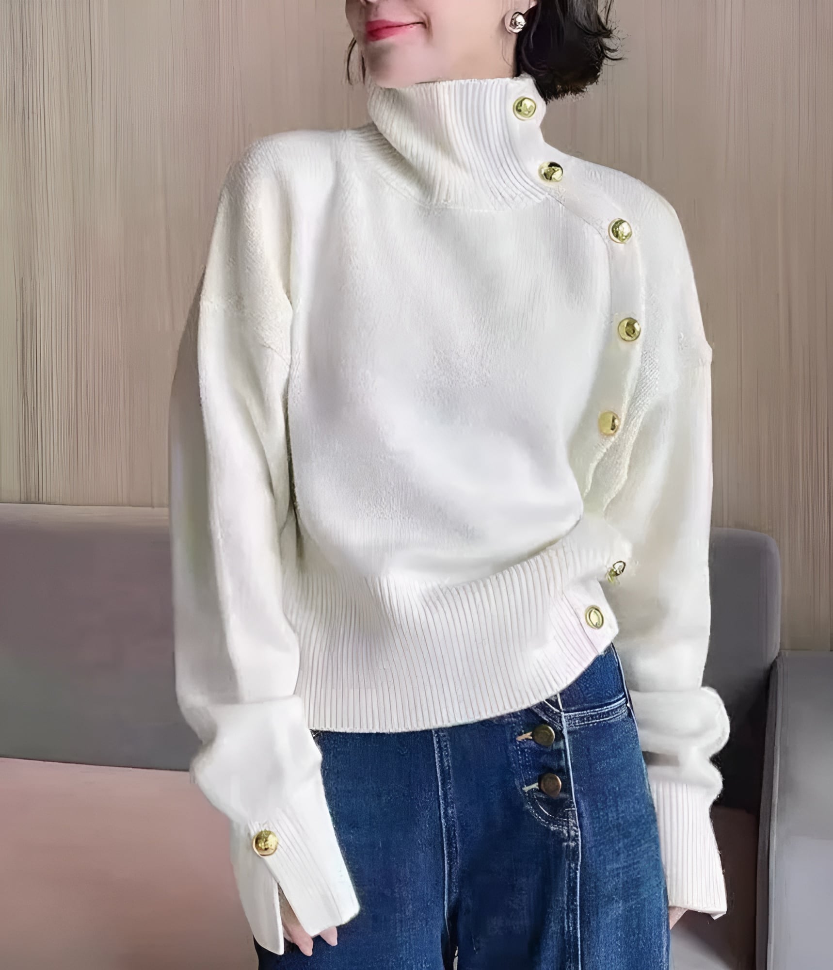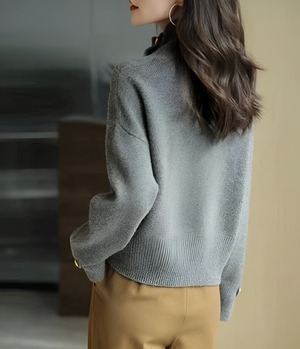 ゴールドボタンハイネックニット