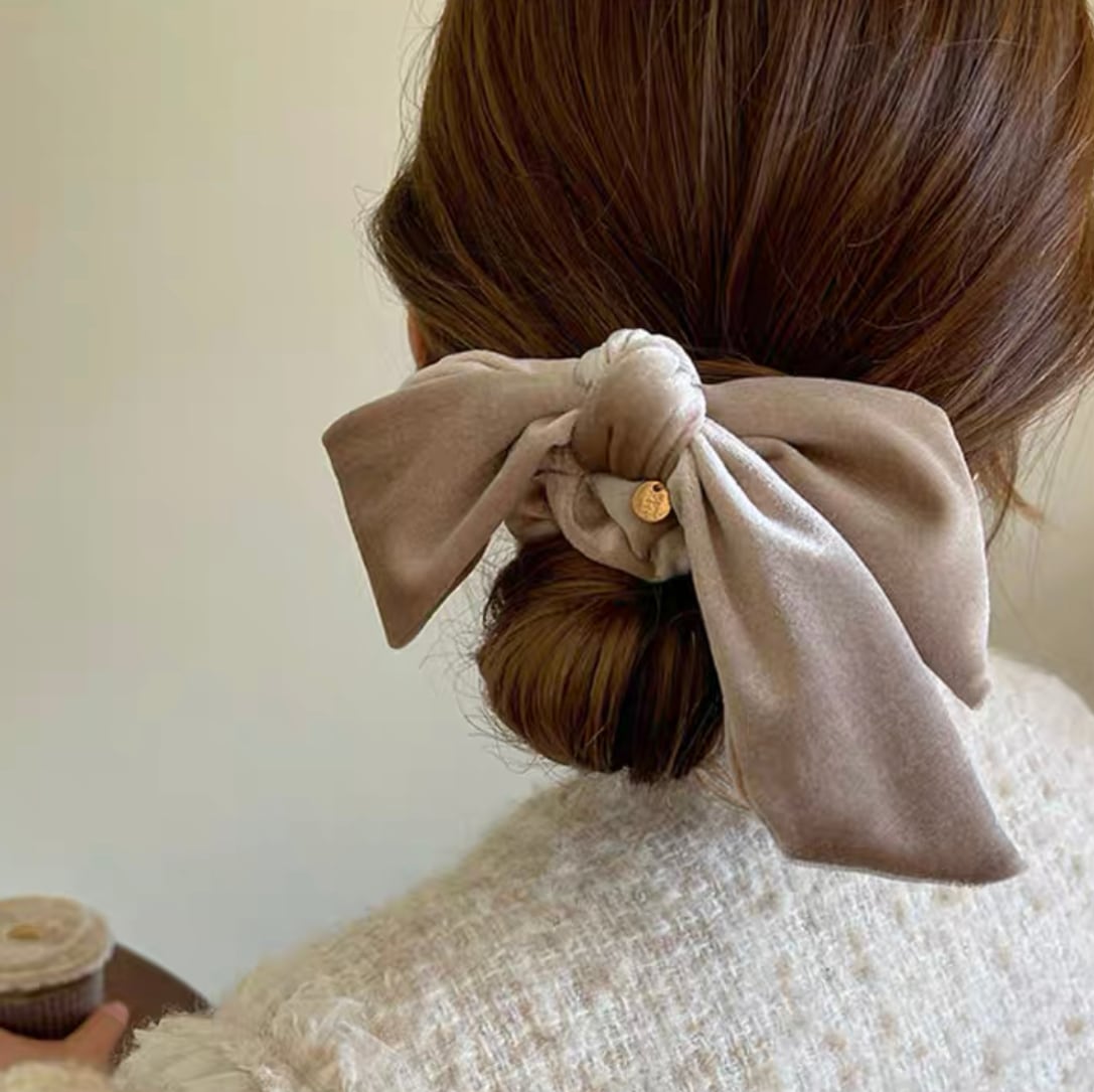 秋冬ムード漂う、大人女性におすすめしたいベロア地のリボンヘアゴム。