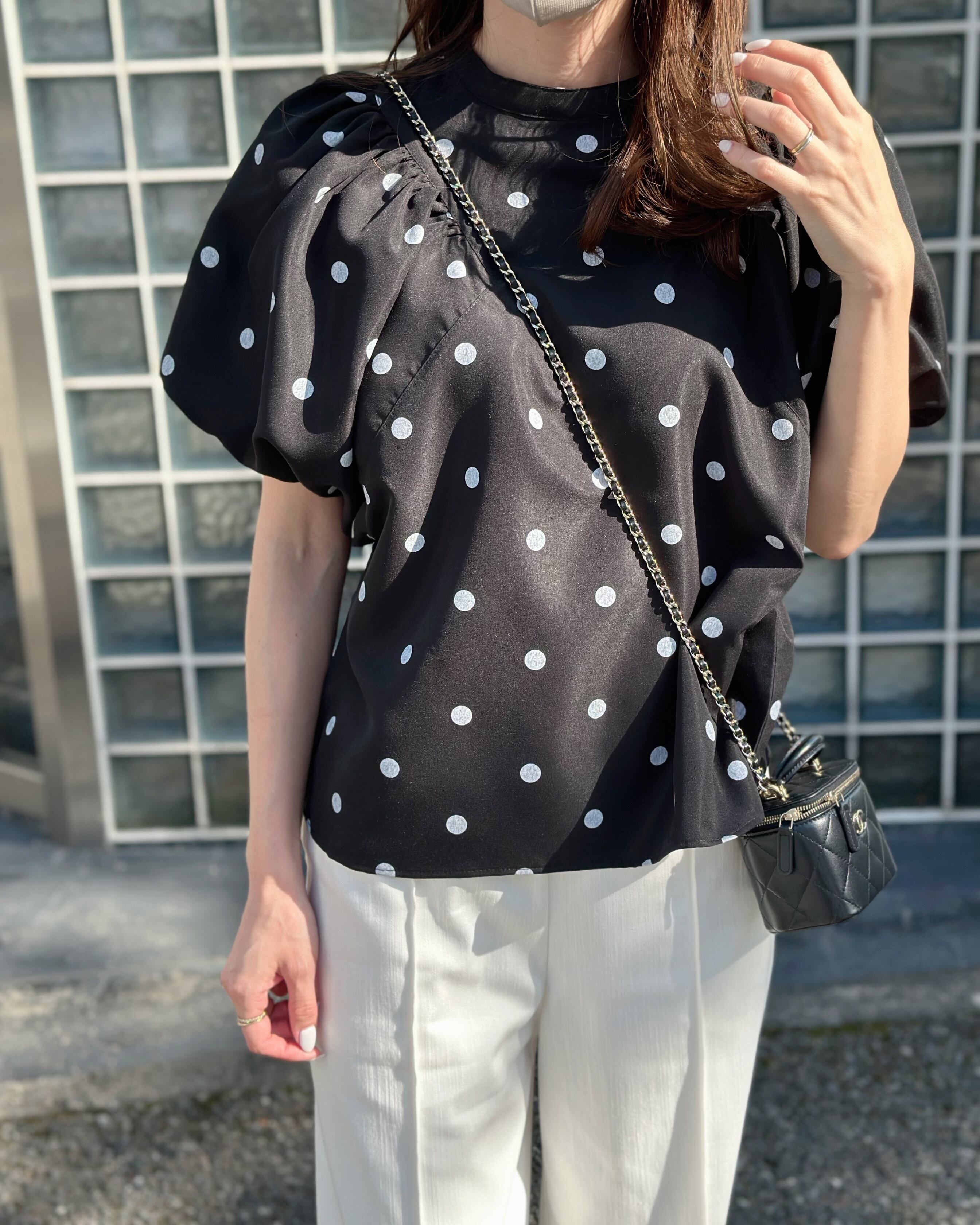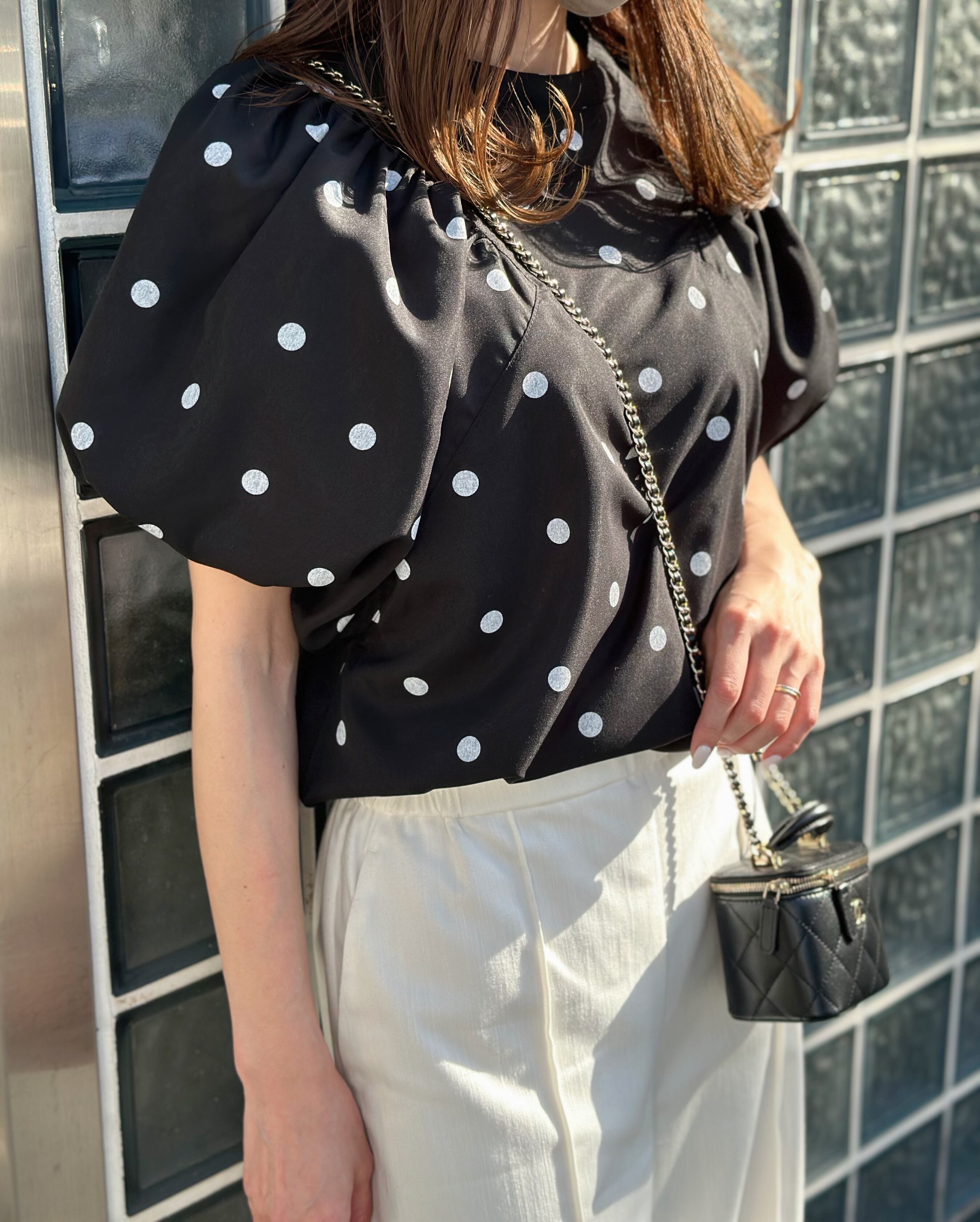 ドットボリュームショルダートップス
