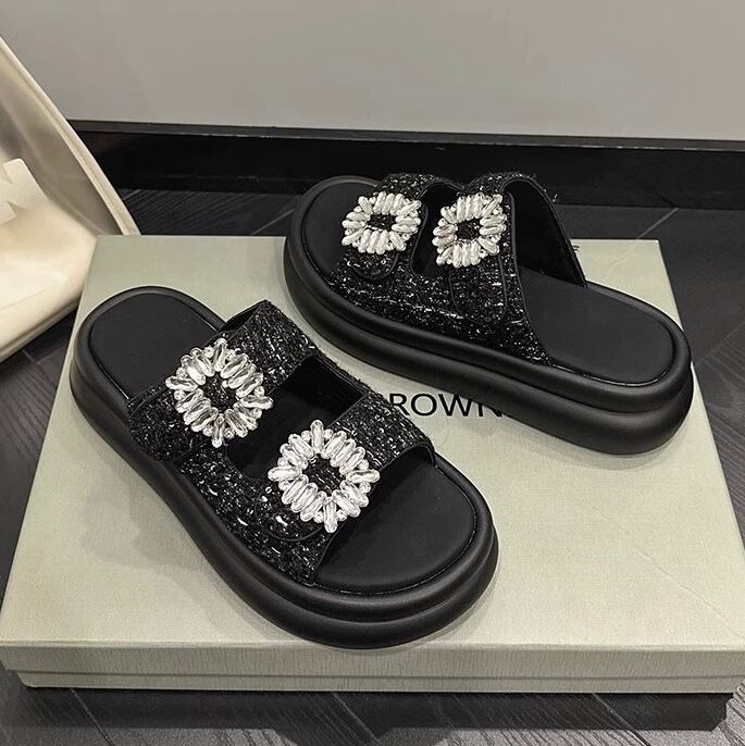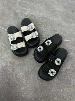 ◆一部即納◆ツイードビジューサンダル(即納:1-4営業日/予約:1-2週間程でお届け)