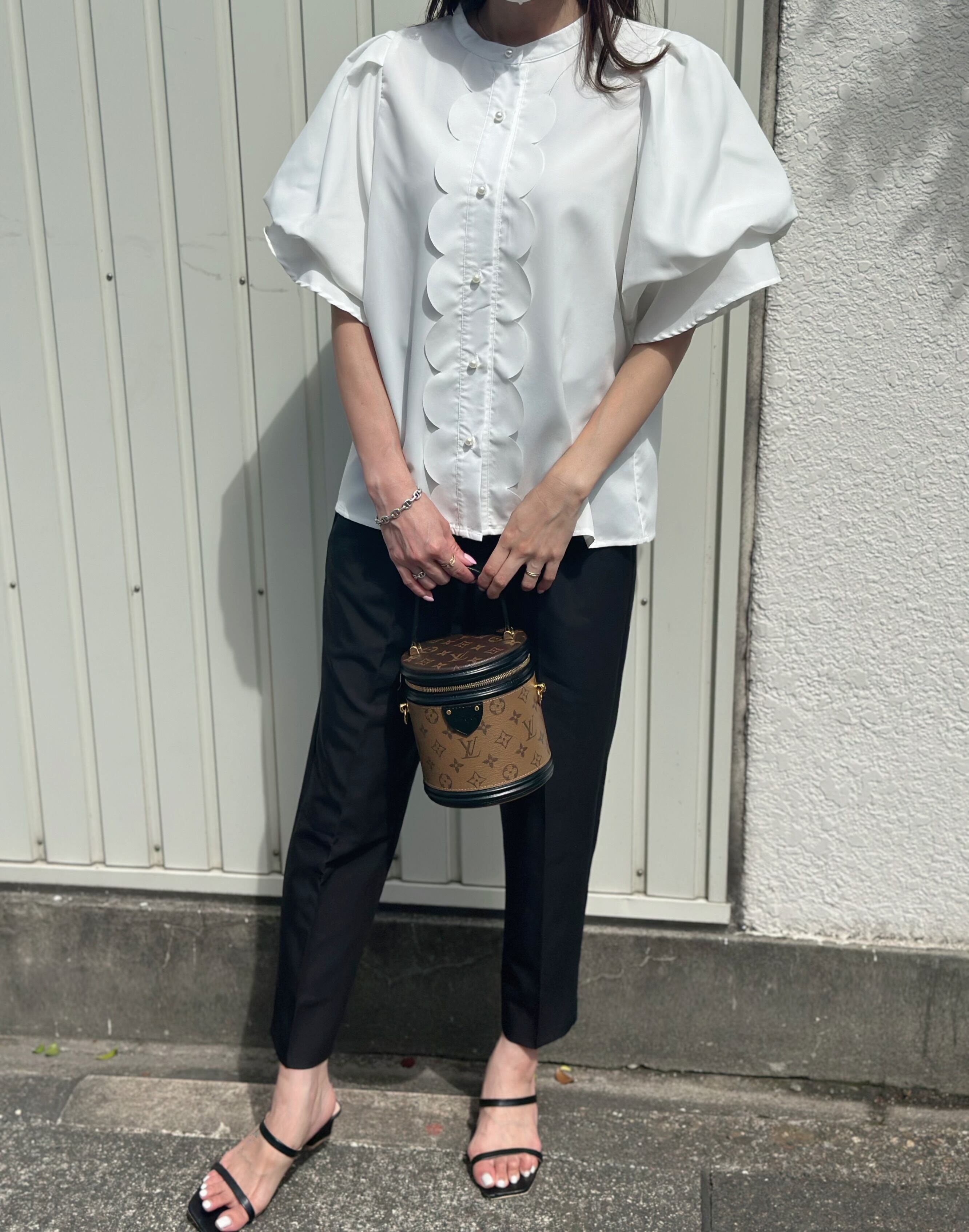 ◆即納◆スカラップパールボタンボリュームブラウス(ネコポス対応)(ご注文から1-4営業日でお届け)