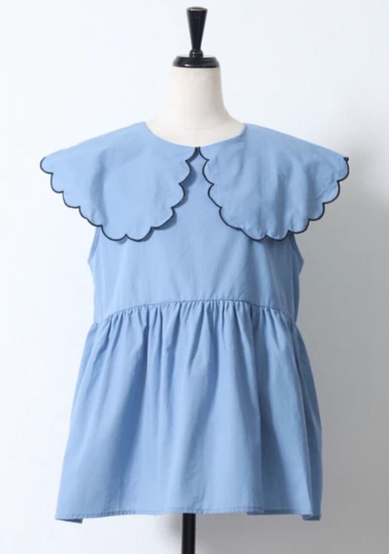 大きめなスカラップカラーが大人可愛く、印象的なノースリーブブラウス♪