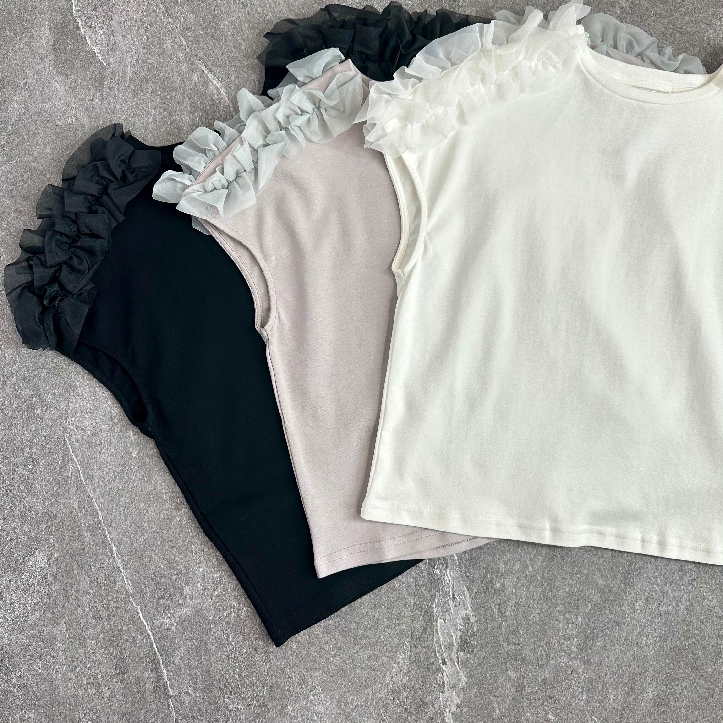 ◆即納◆ショルダーシフォンフリルトップス(ネコポス対応)(ご注文から1-4営業日でお届け)