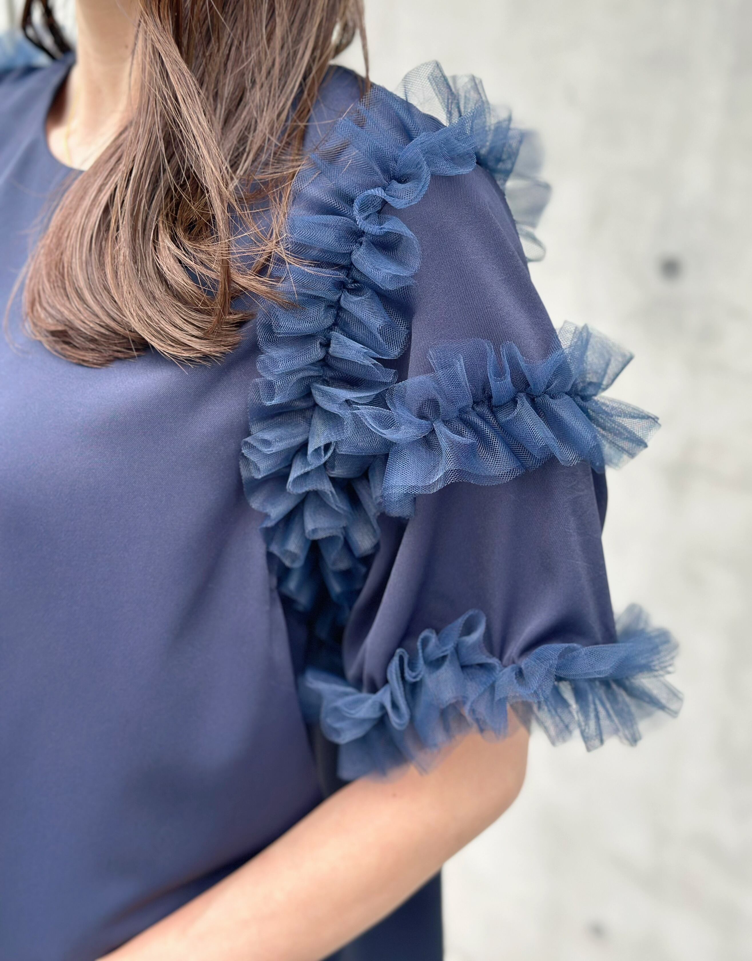 シンプルながらも袖のシフォンデザインが、いつものコーデをワンランクアップしてくれる1枚です!