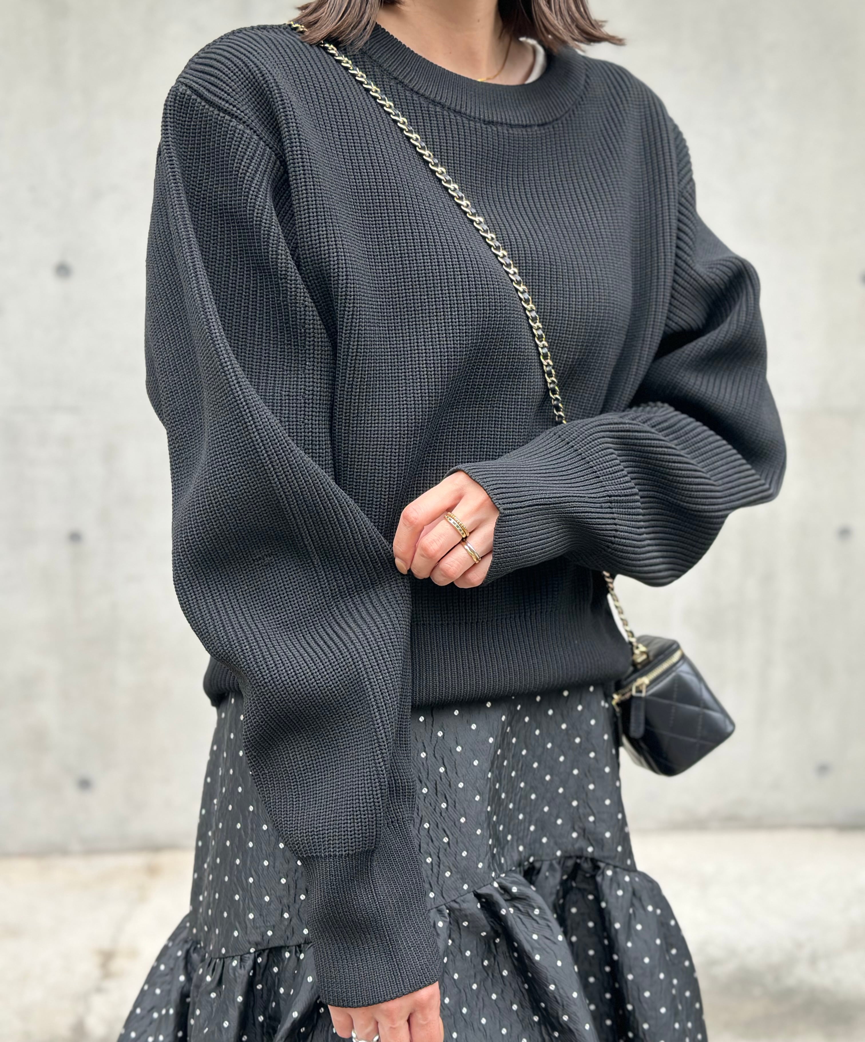 袖のシルエットが立体感を生み出し、シンプルなスタイルでもトレンド感を演出!
